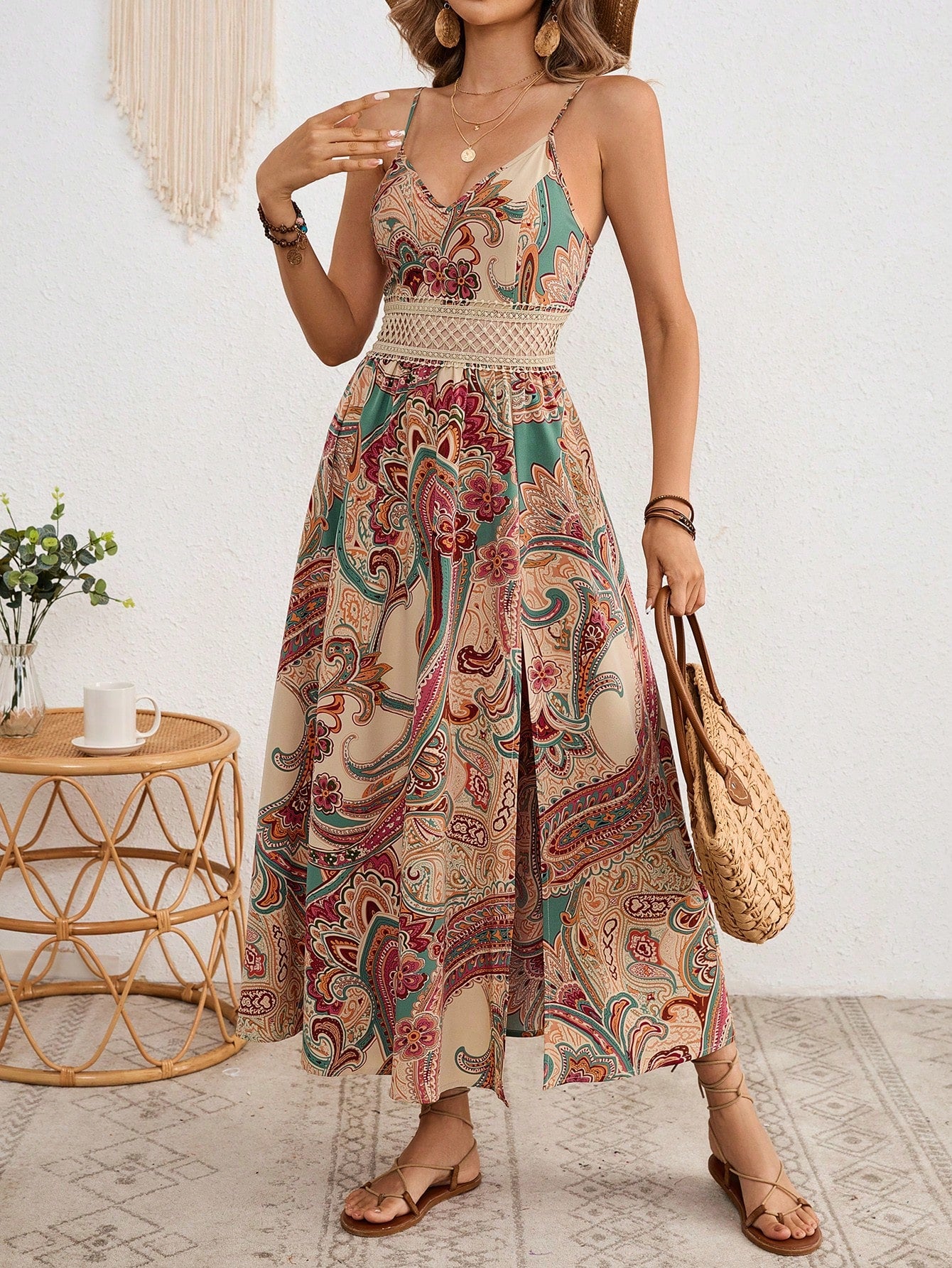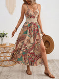 Chic Escape: Printed Slit Woven Halter Neck Dress for Effortless Summer Style