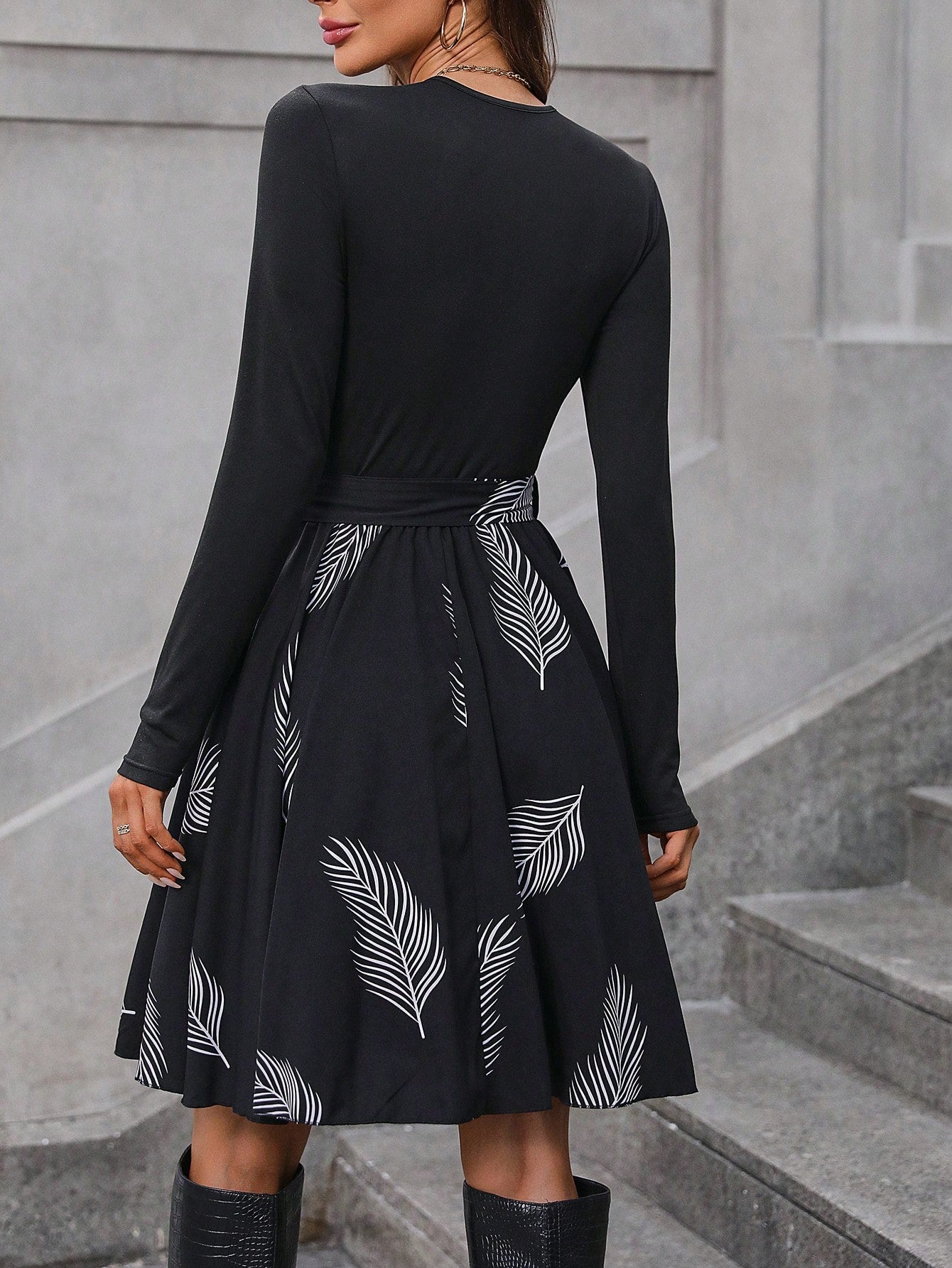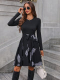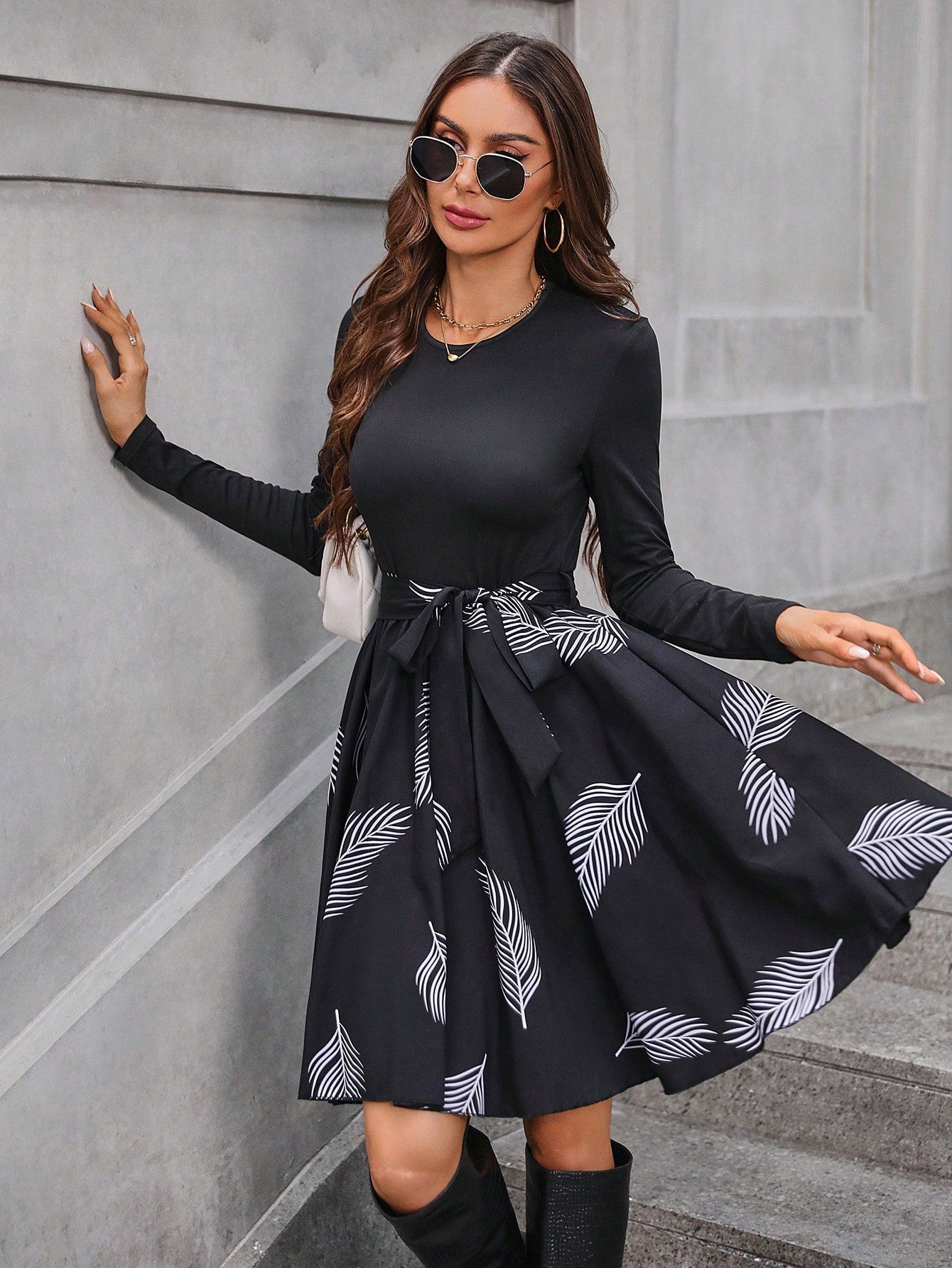 Chic Essence Graphic Print Belted Dress for Effortless Style