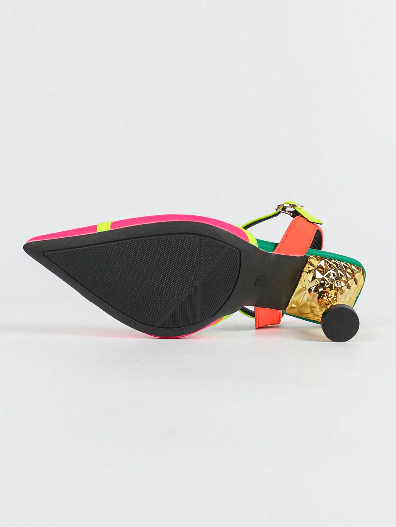 Elevate your style with our Chic European Style Color Block Stiletto Sandals. Designed for elegant events, these slingback sandals feature a stunning color block design that will make a statement. The stiletto heel adds a touch of sophistication, making these the perfect choice for any formal occasion.