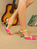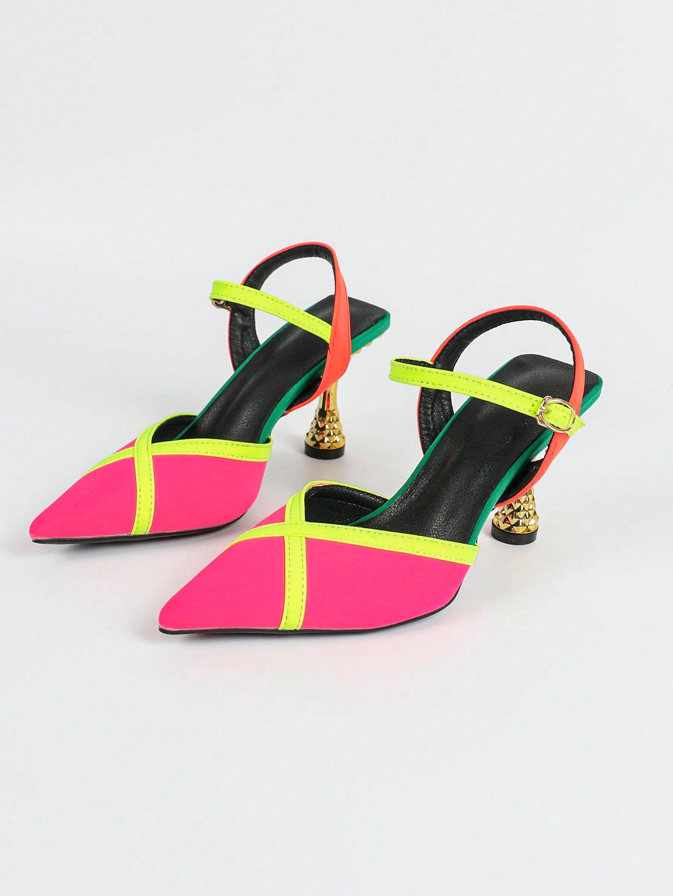 Chic European Style Color Block Stiletto Slingback Sandals for Elegant Events
