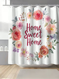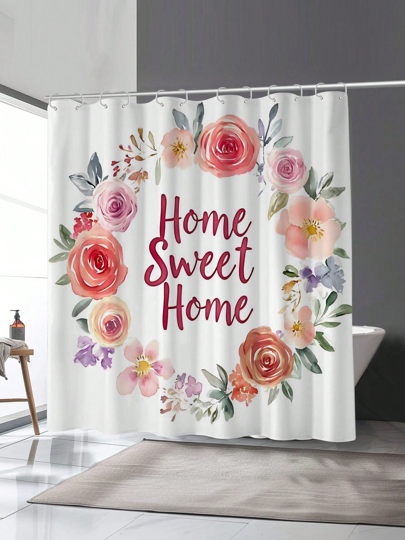 Chic Floral Alphabet Waterproof Shower Curtain with Hooks – Stylish Bathroom Essential