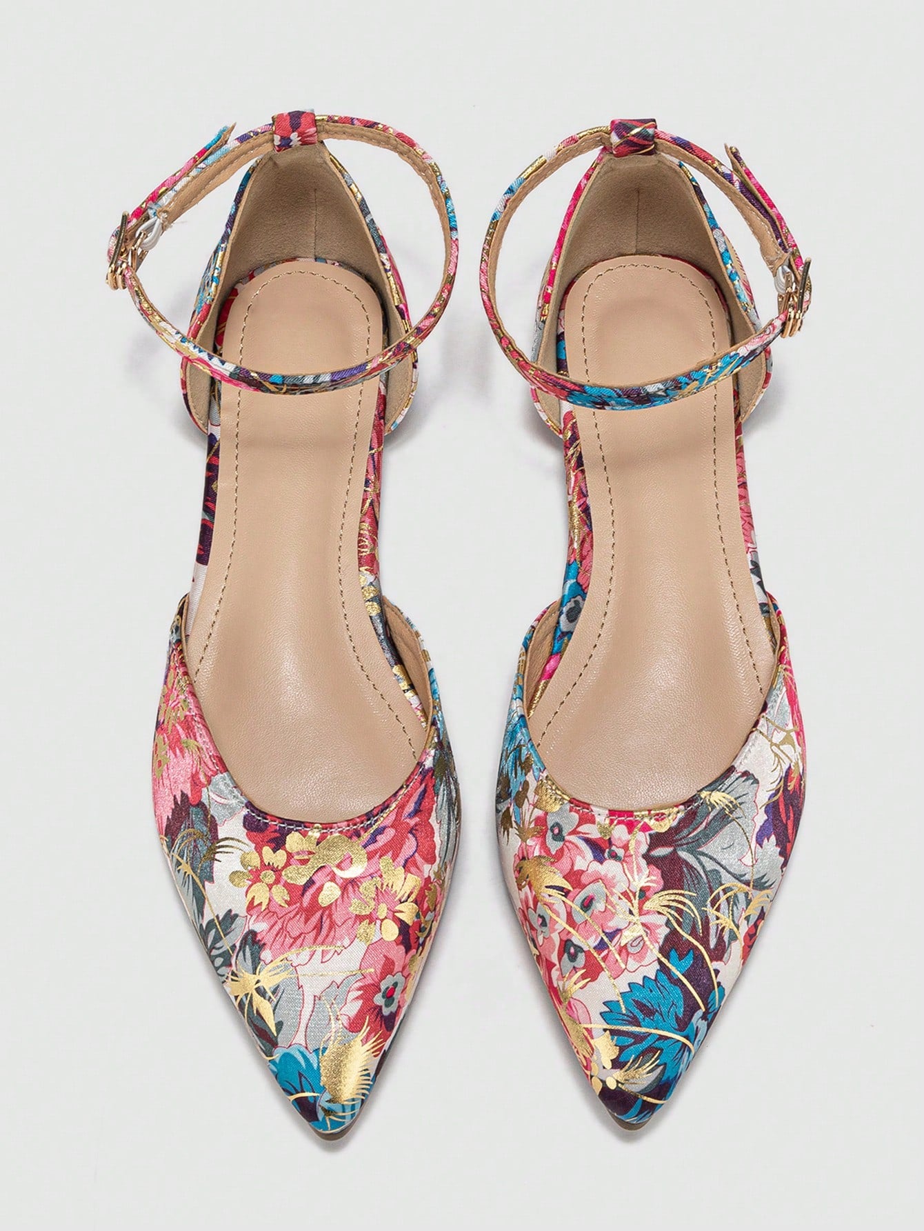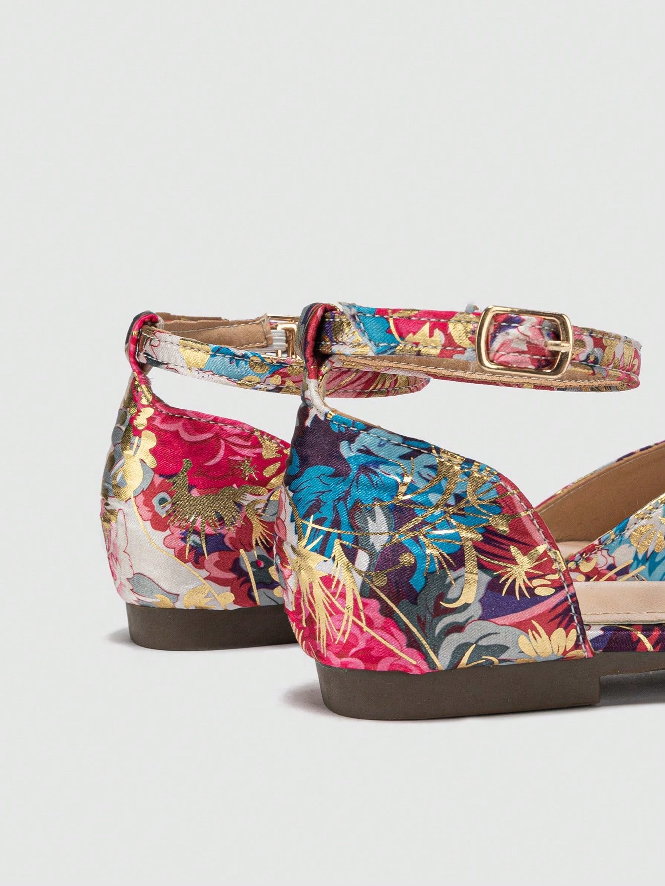 Chic Floral Ankle Strap Flats for Effortless Outdoor Style