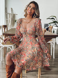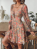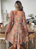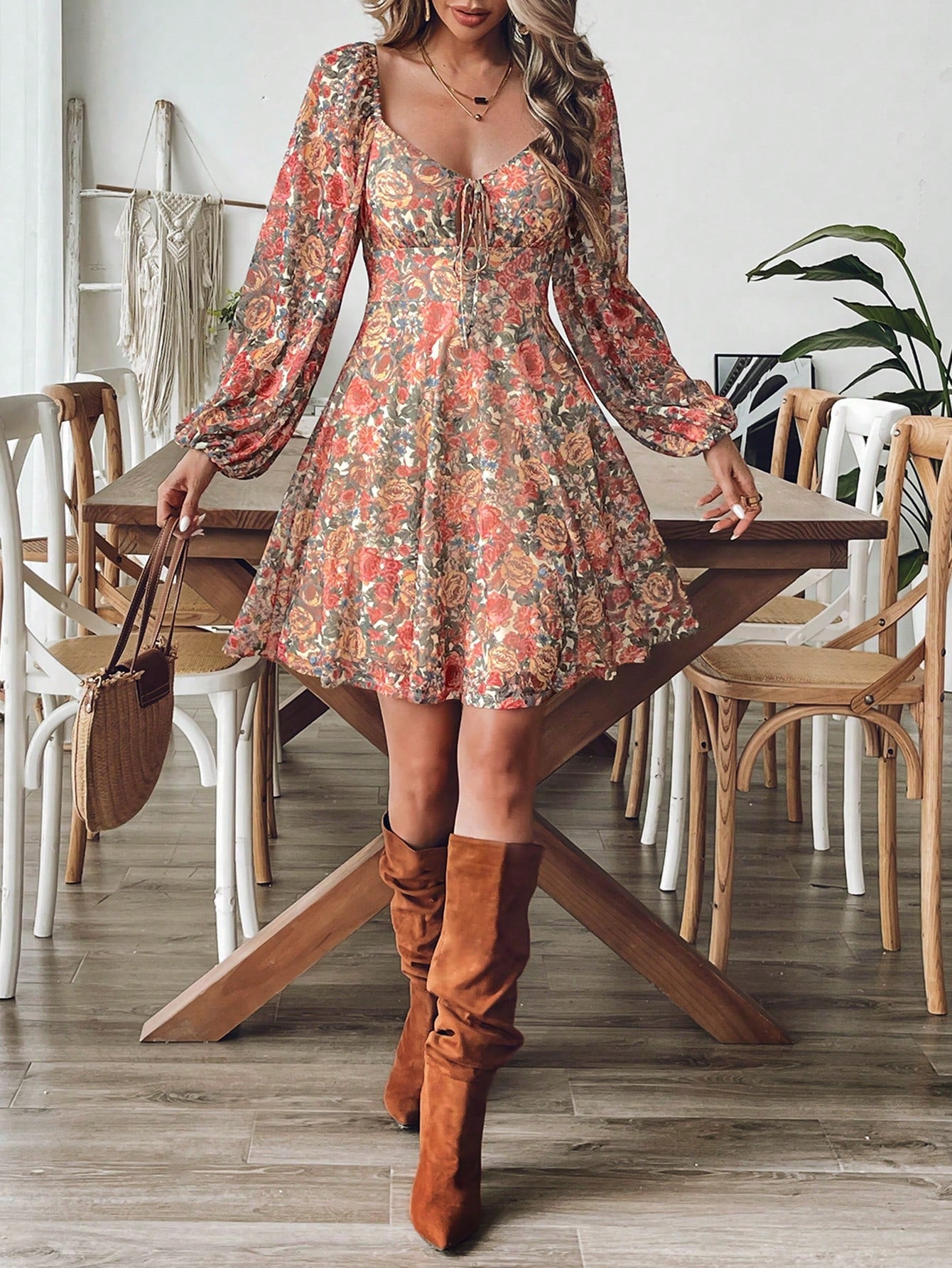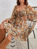 Chic Floral Cinched Waist Midi Dress for Effortless Winter Elegance