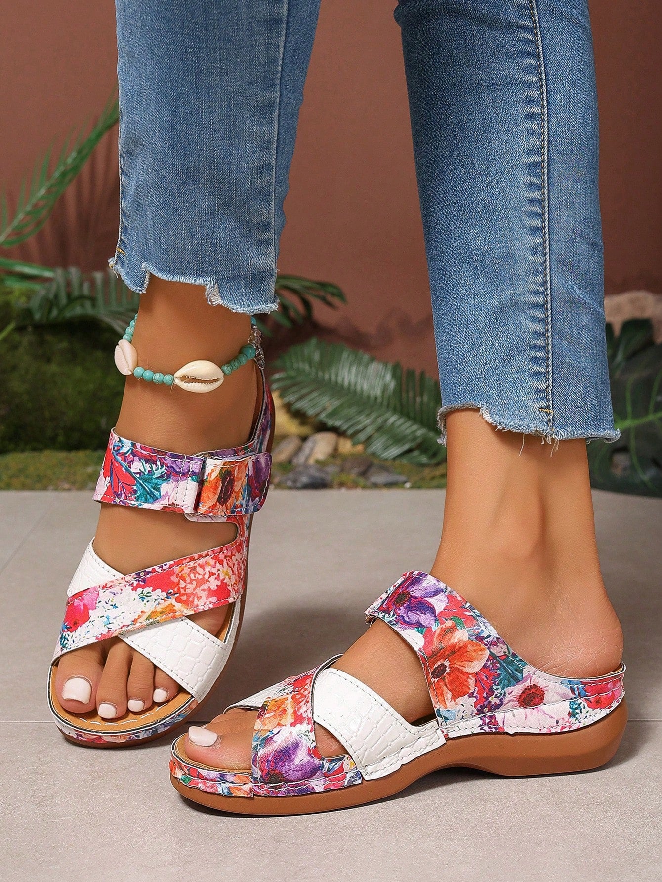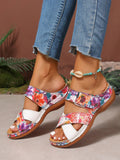 Chic Floral Criss-Cross Slides: Trendy Thick Sole Sandals for Summer Bliss