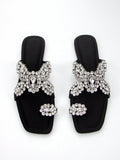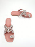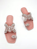 Chic Floral Diamond Slip-On Mules – Elegant Comfy Flat Sandals for Parties in Pink