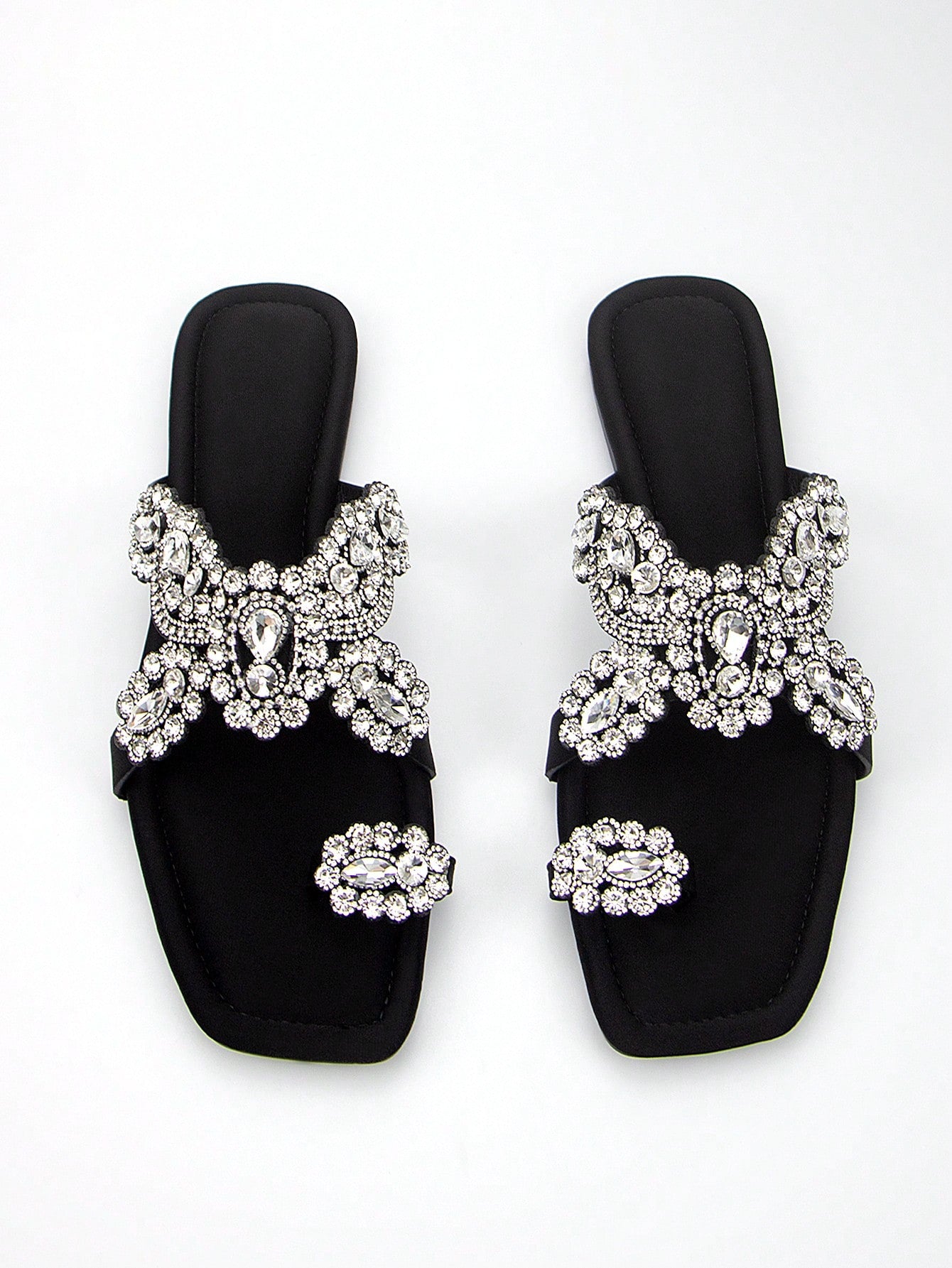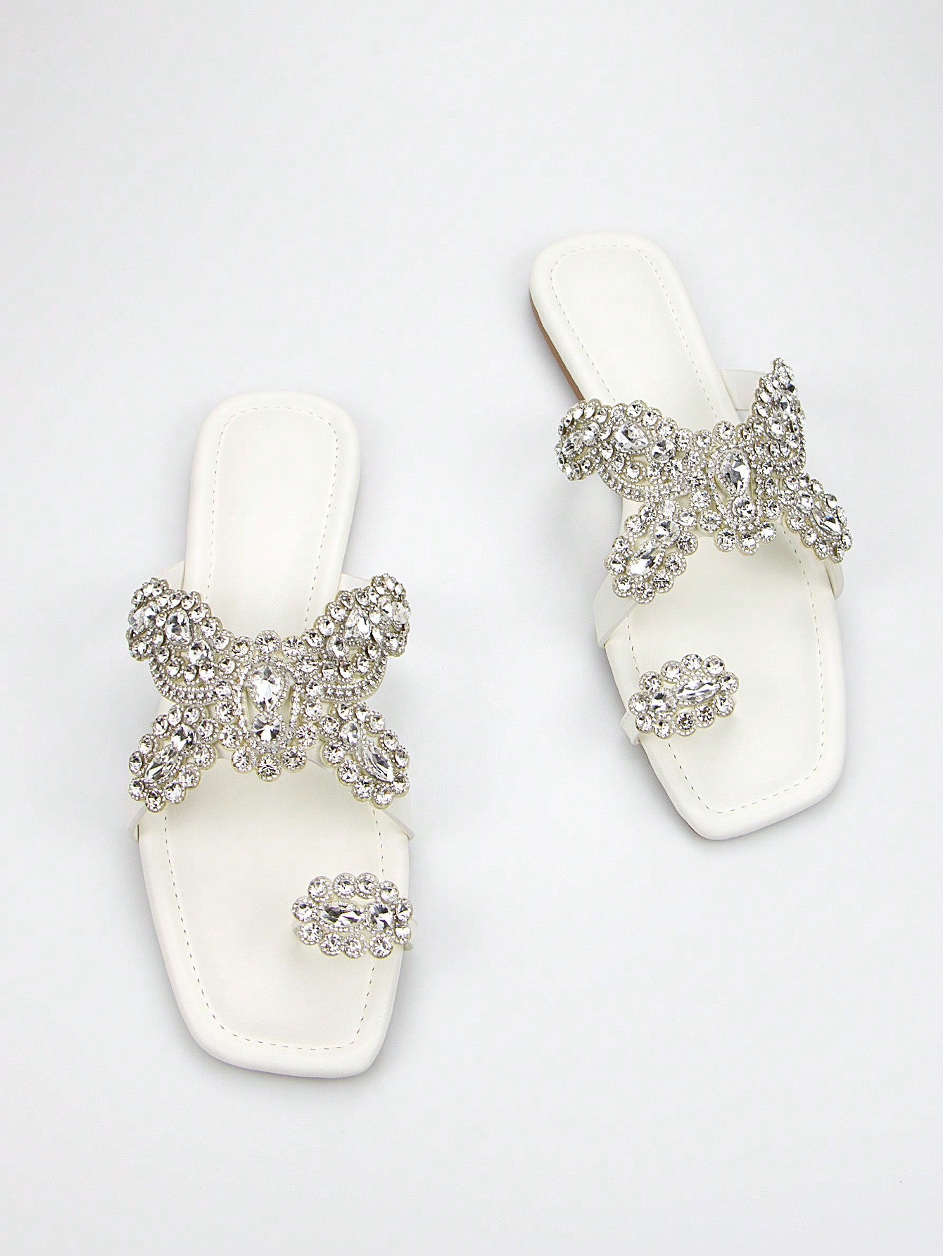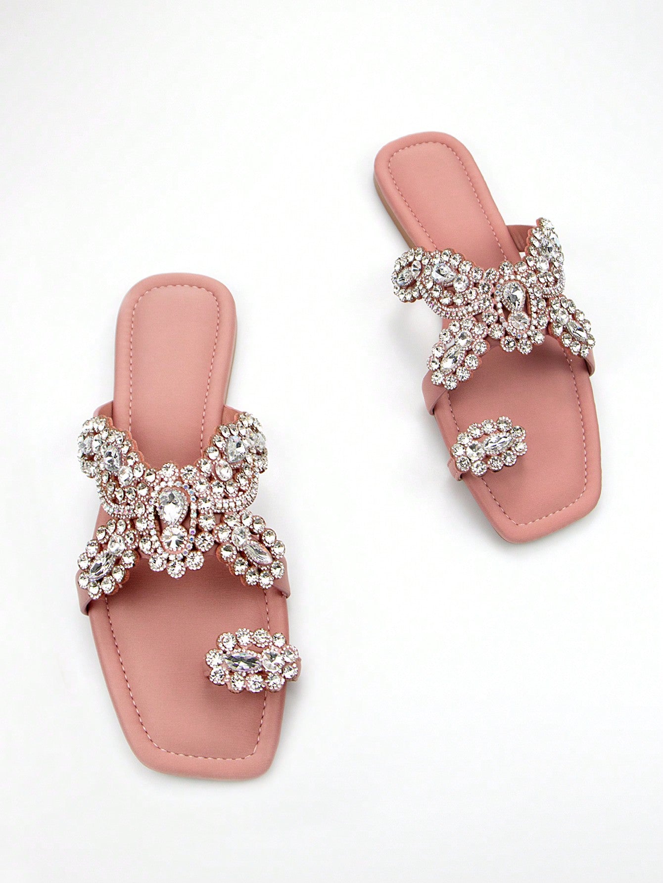 Elevate your party look with our Chic Floral Diamond Slip-On Mules. Featuring a stunning floral design with sparkling diamond accents, these elegant flat sandals are the perfect blend of style and comfort. Step out in style and make a statement at any occasion. Available in pink.