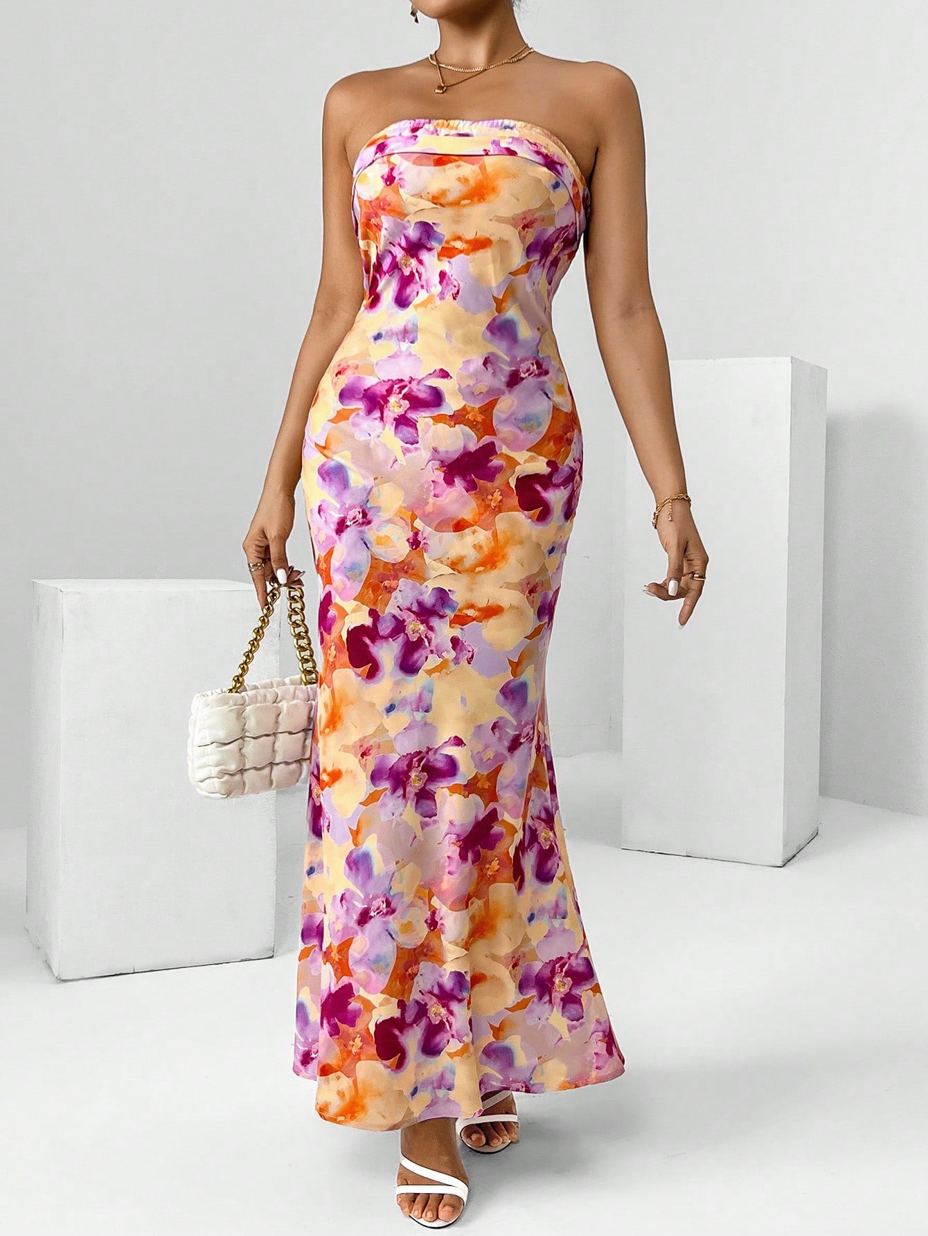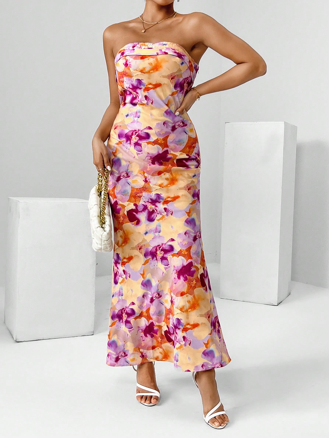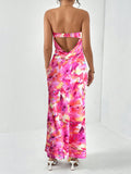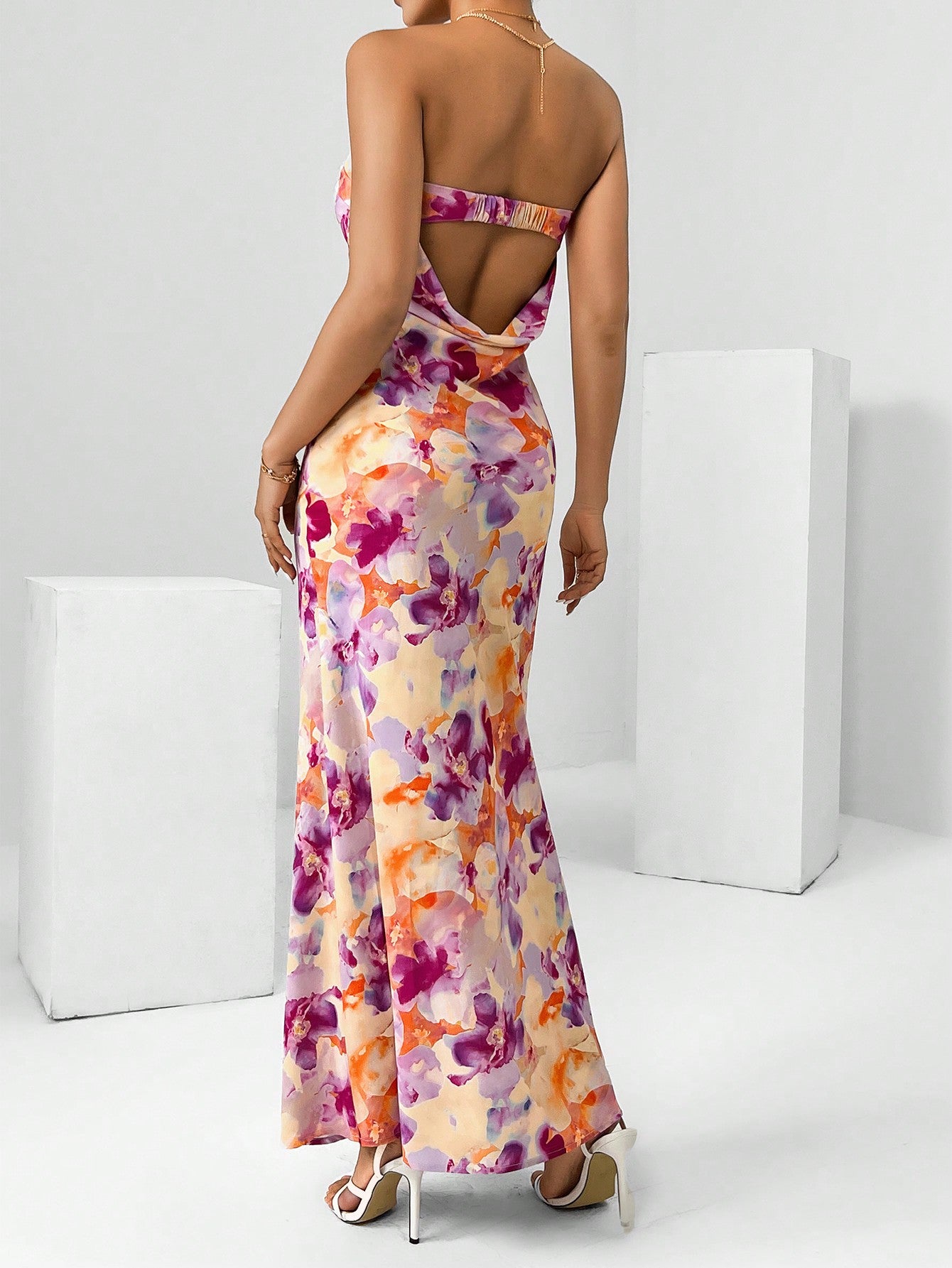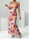 Chic Floral Draped Backless Tube Dress - Perfect for Spring Break!