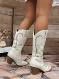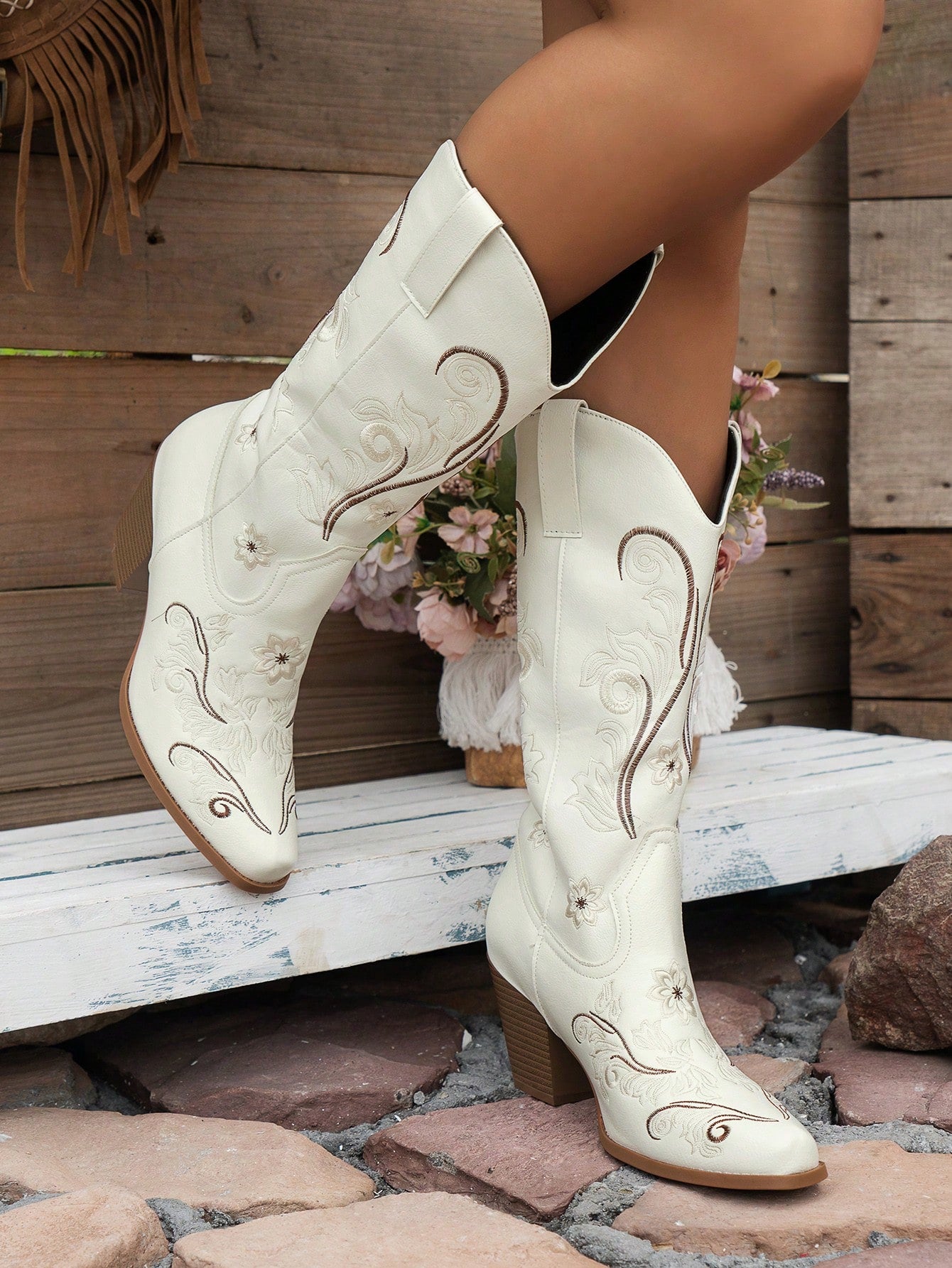 Chic Floral Embroidered Chunky Heel Western Boots for Effortless Spring & Autumn Style