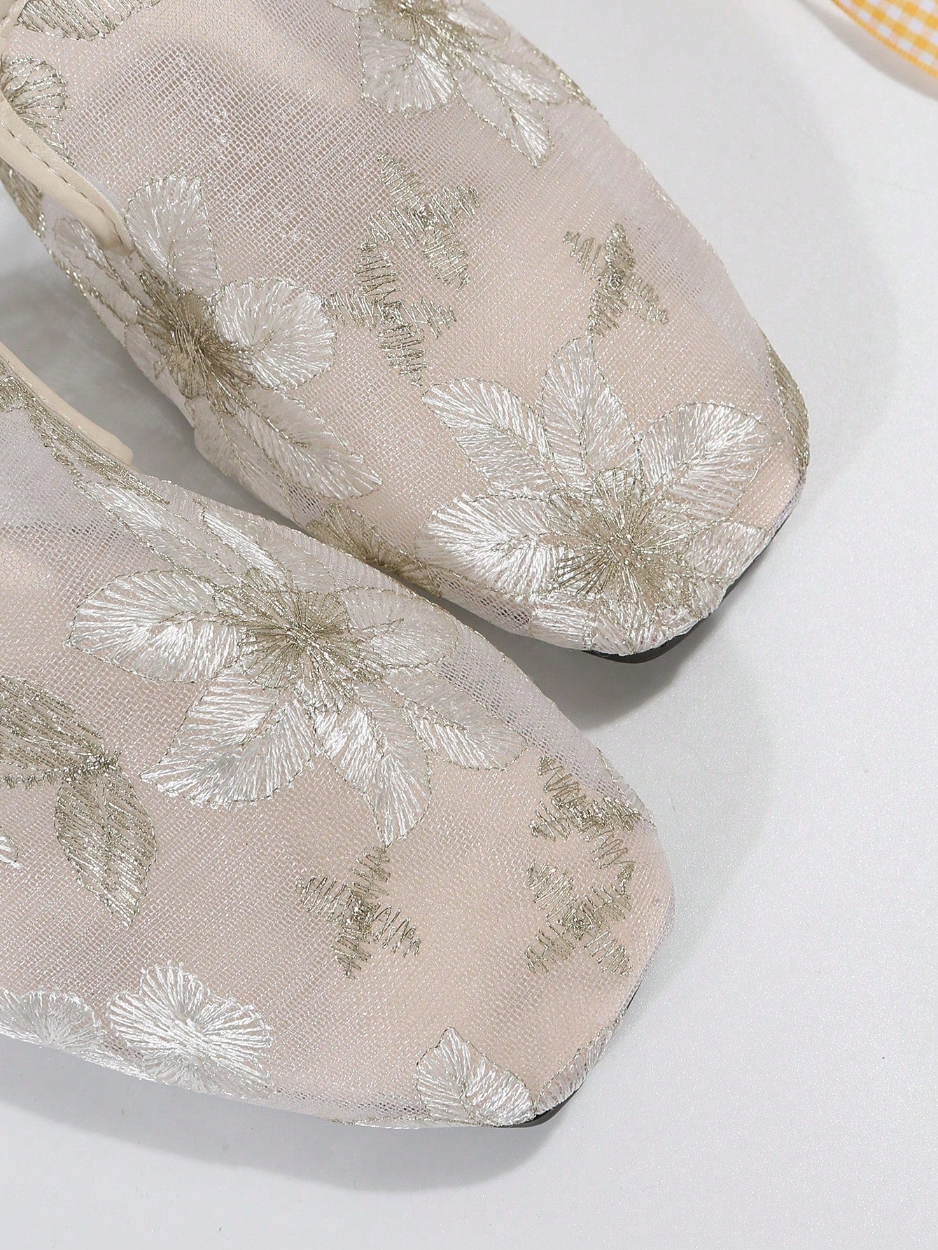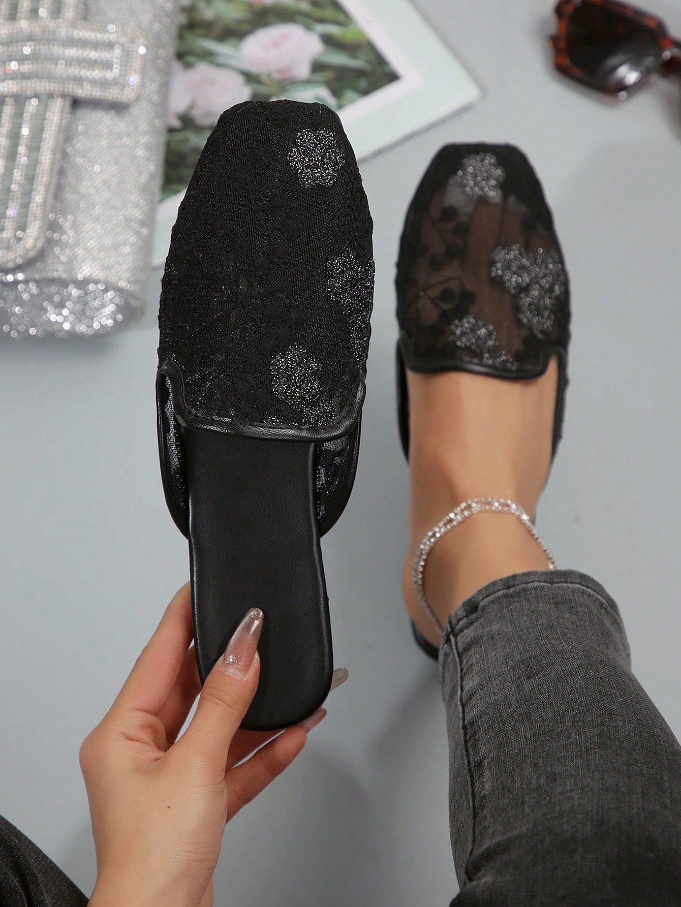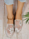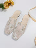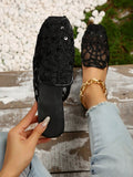 Chic Floral Embroidered Mesh Panel Flat Mules for Effortless Style