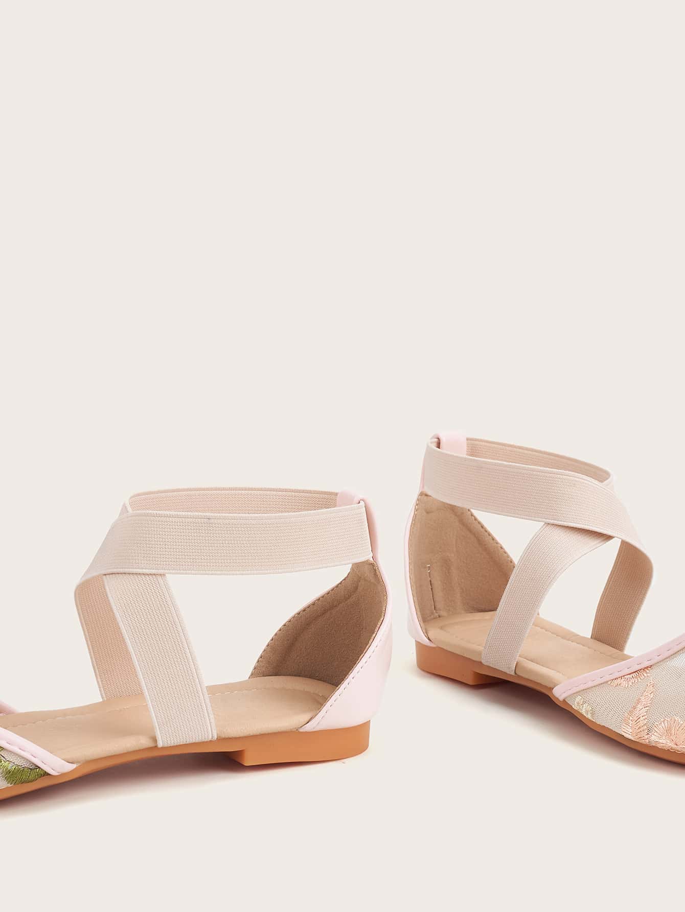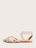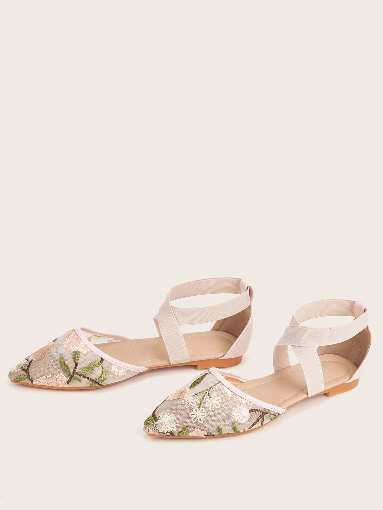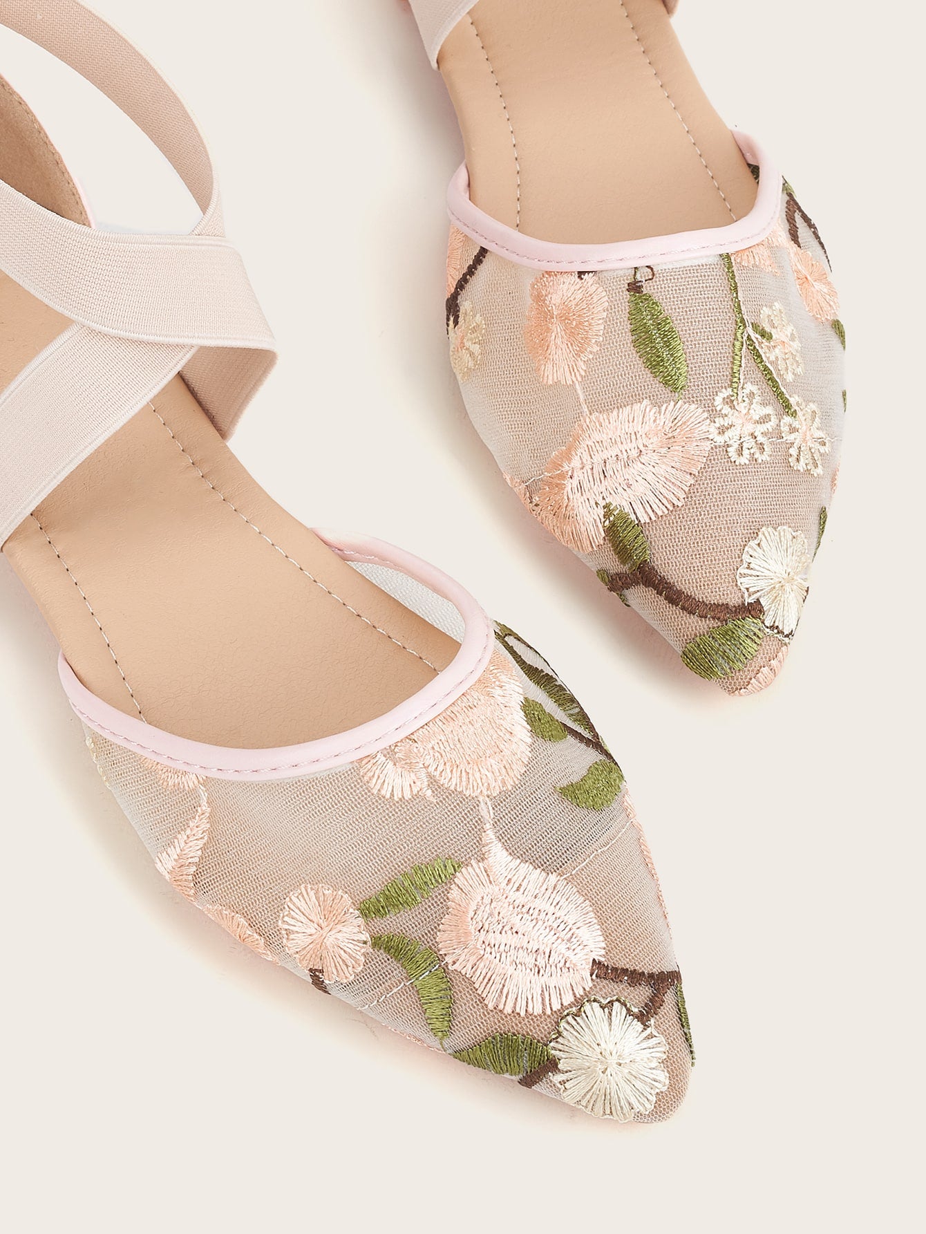 Chic Floral Embroidery Pointed-Toe Ankle Strap Flats for Effortless Elegance