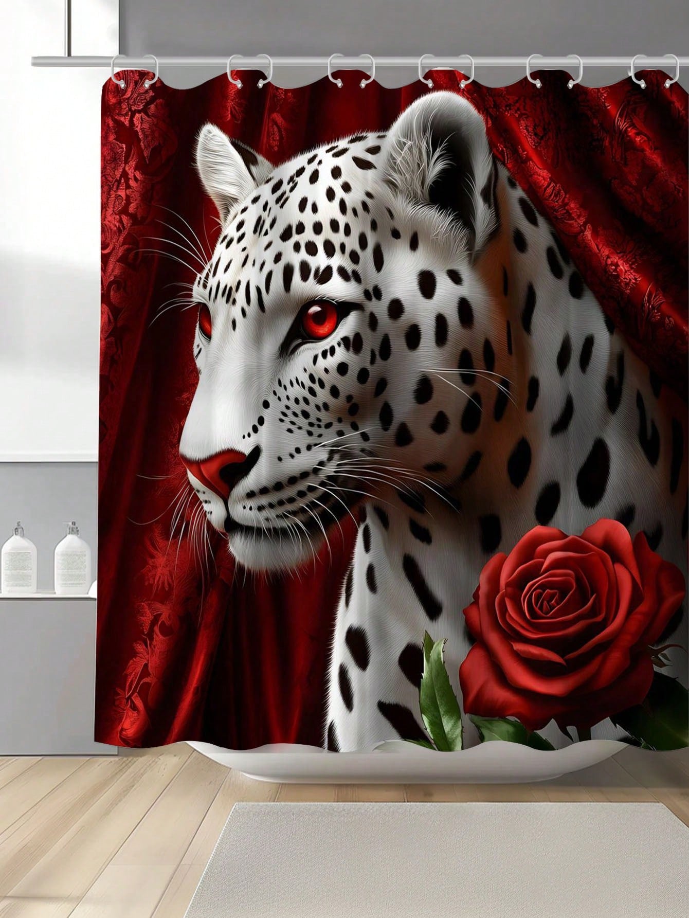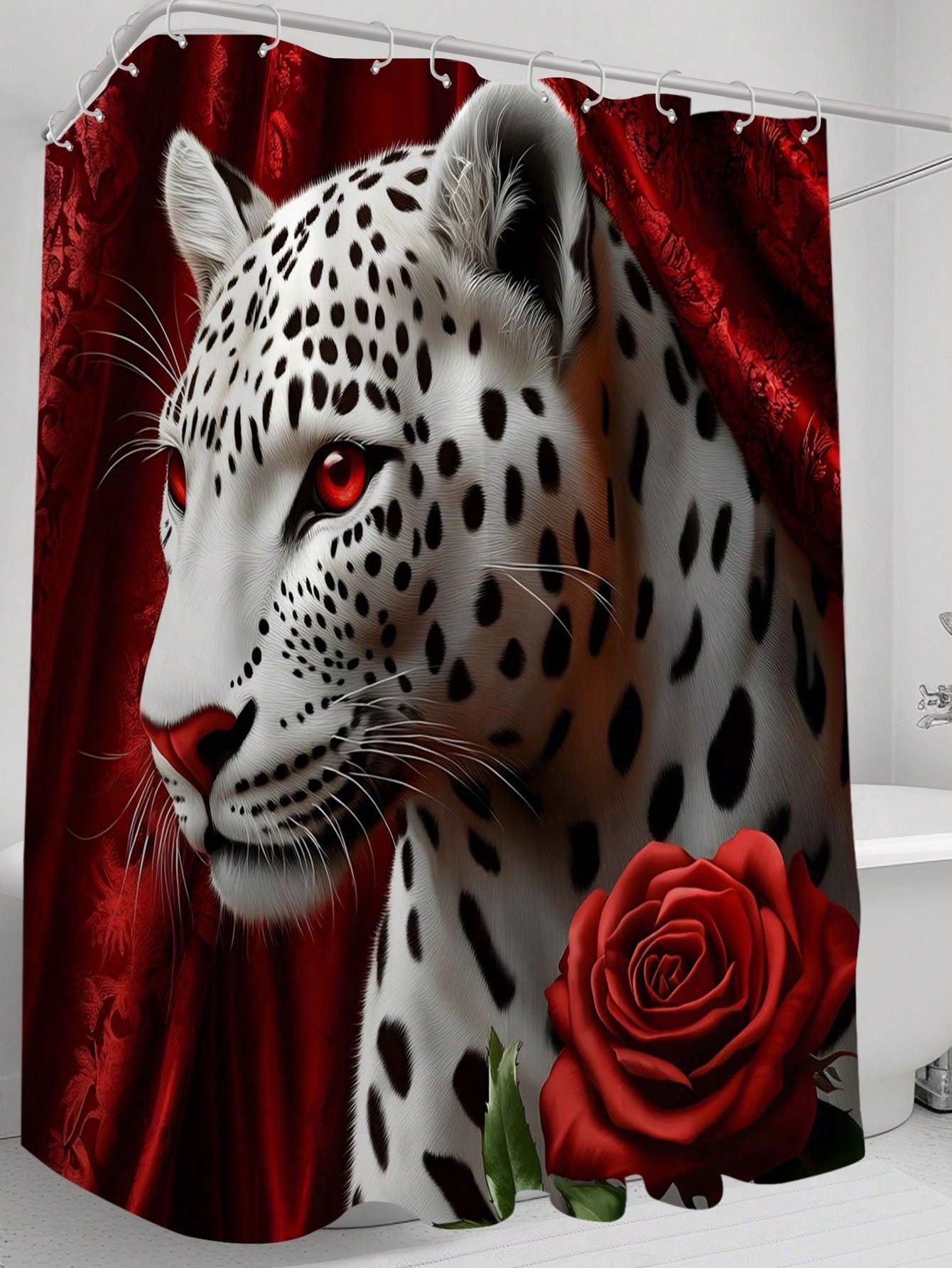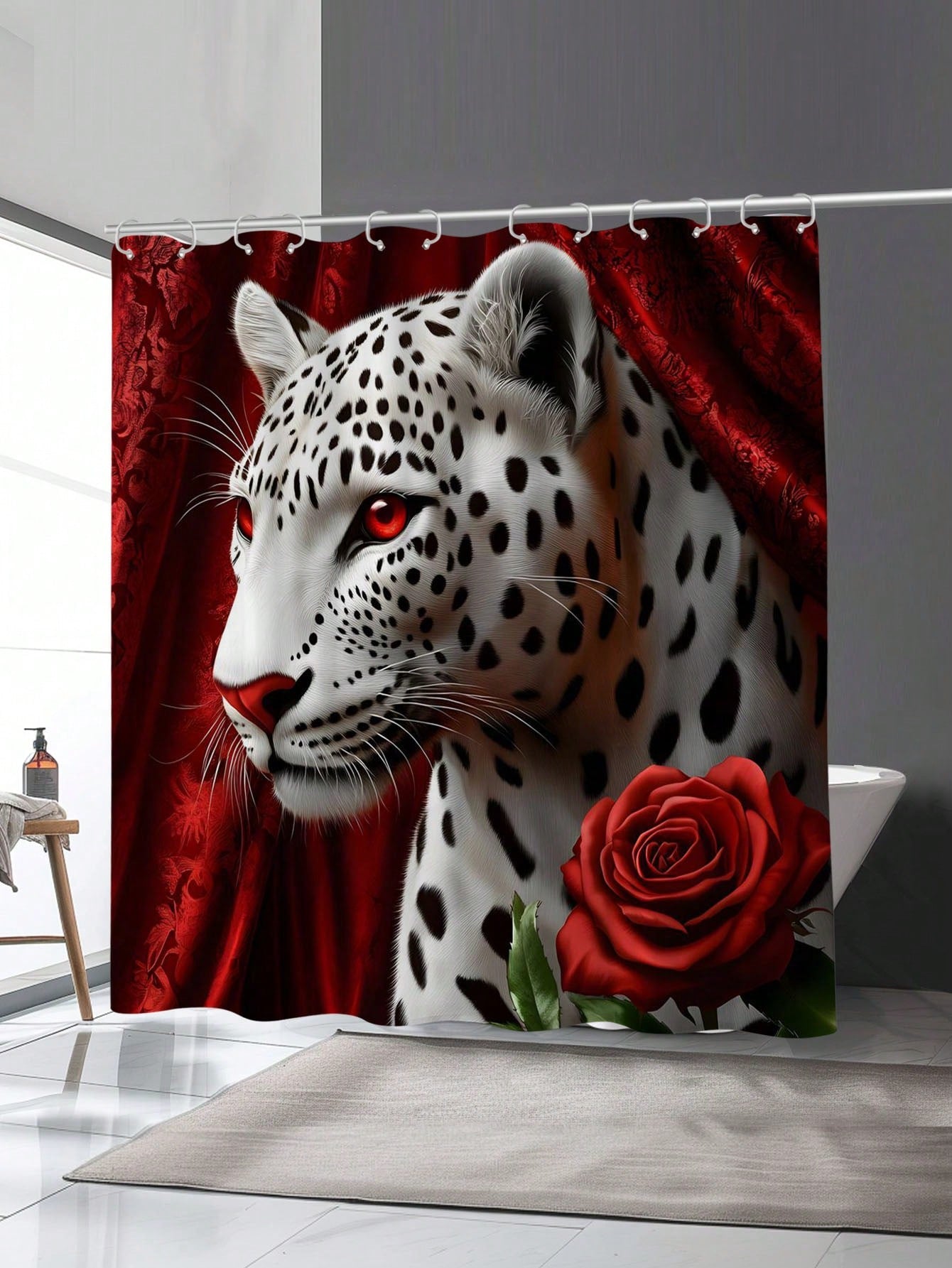Chic Floral Leopard Print Shower Curtain - Waterproof & Mildew Resistant with 12 Hooks