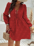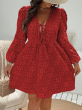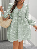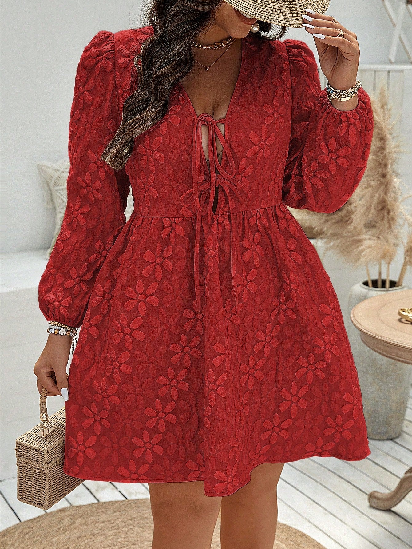 Chic Floral Print Plus Size Lace-Up Mini Dress with Long Sleeves