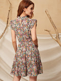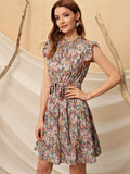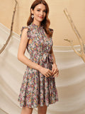 Chic Floral Ruffle Hem Belted Dress – Effortless Elegance for Any Occasion