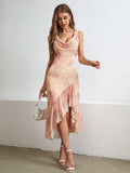 Chic Floral Ruffled Collar Asymmetrical Hem Dress