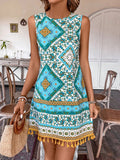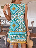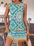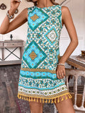 Chic Floral Spaghetti Strap Dress with Trendy Fringe Hem