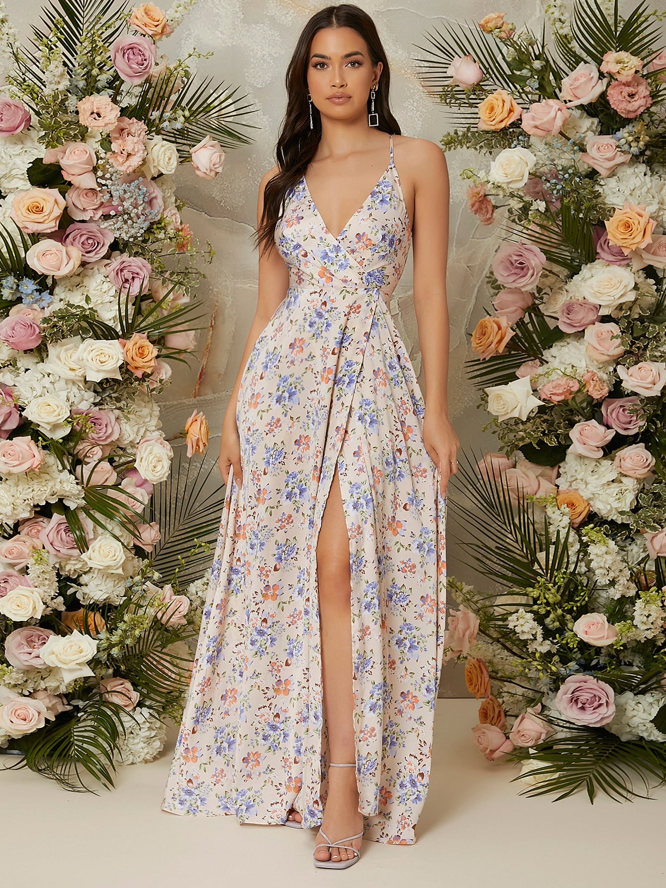 Chic Floral Split-Thigh Cami Dress for Effortless Summer Style