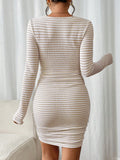 Chic Frenchy Autumn Striped Bodycon Dress with Long Sleeves