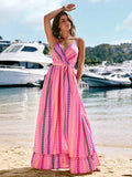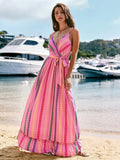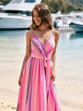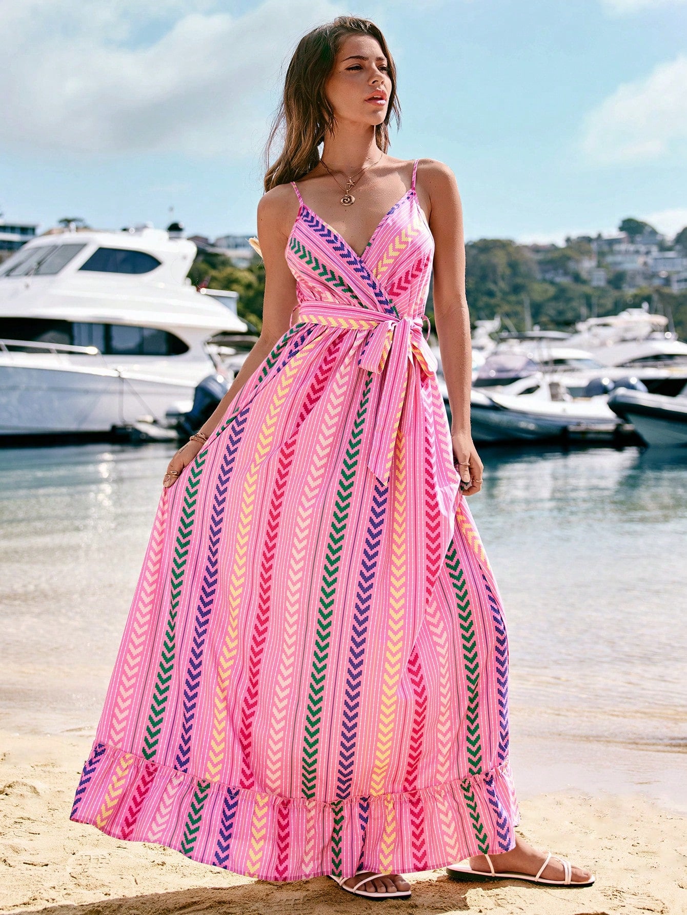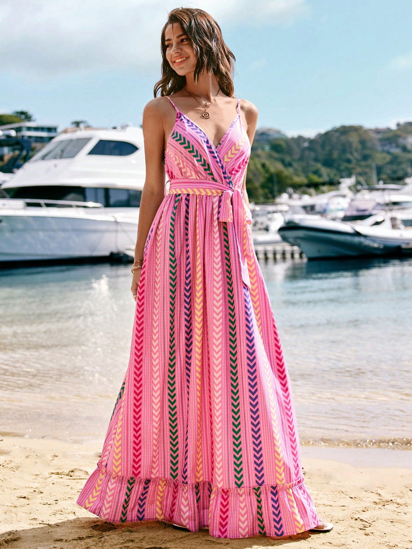 Chic Geometric Maxi Dress with Self-Tie Waist – Perfect for Summer Vacations!