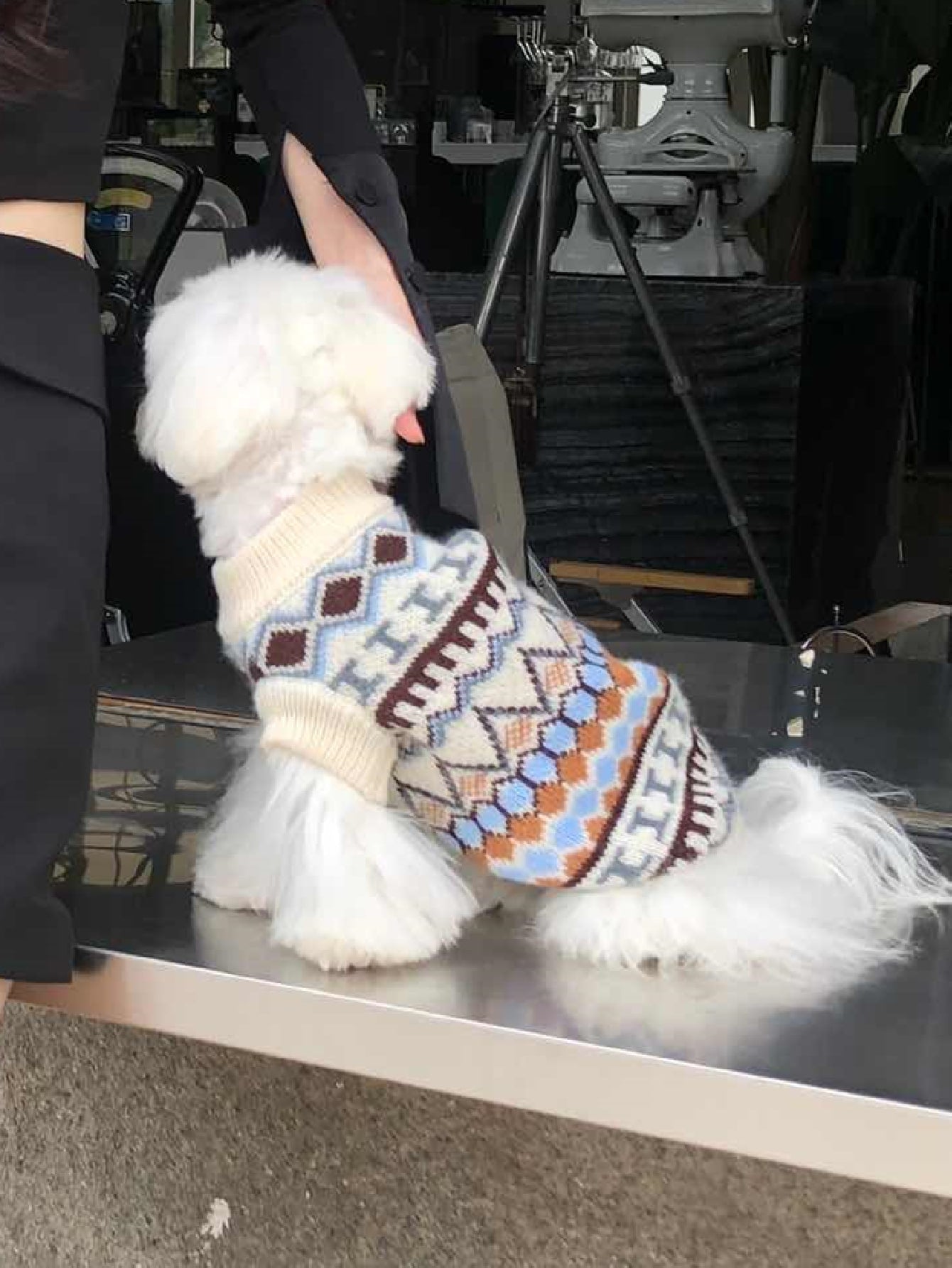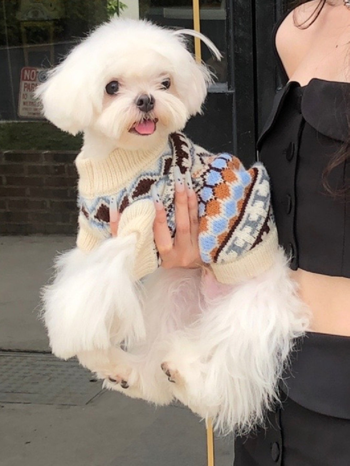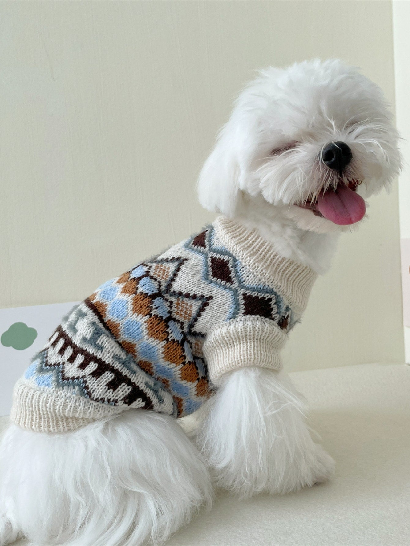 Chic Geometric Pattern Pet Sweater: Keep Your Furry Friend Warm in Style