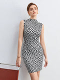 Chic Geometric Print Bodycon Mini Dress for Modern Elegance