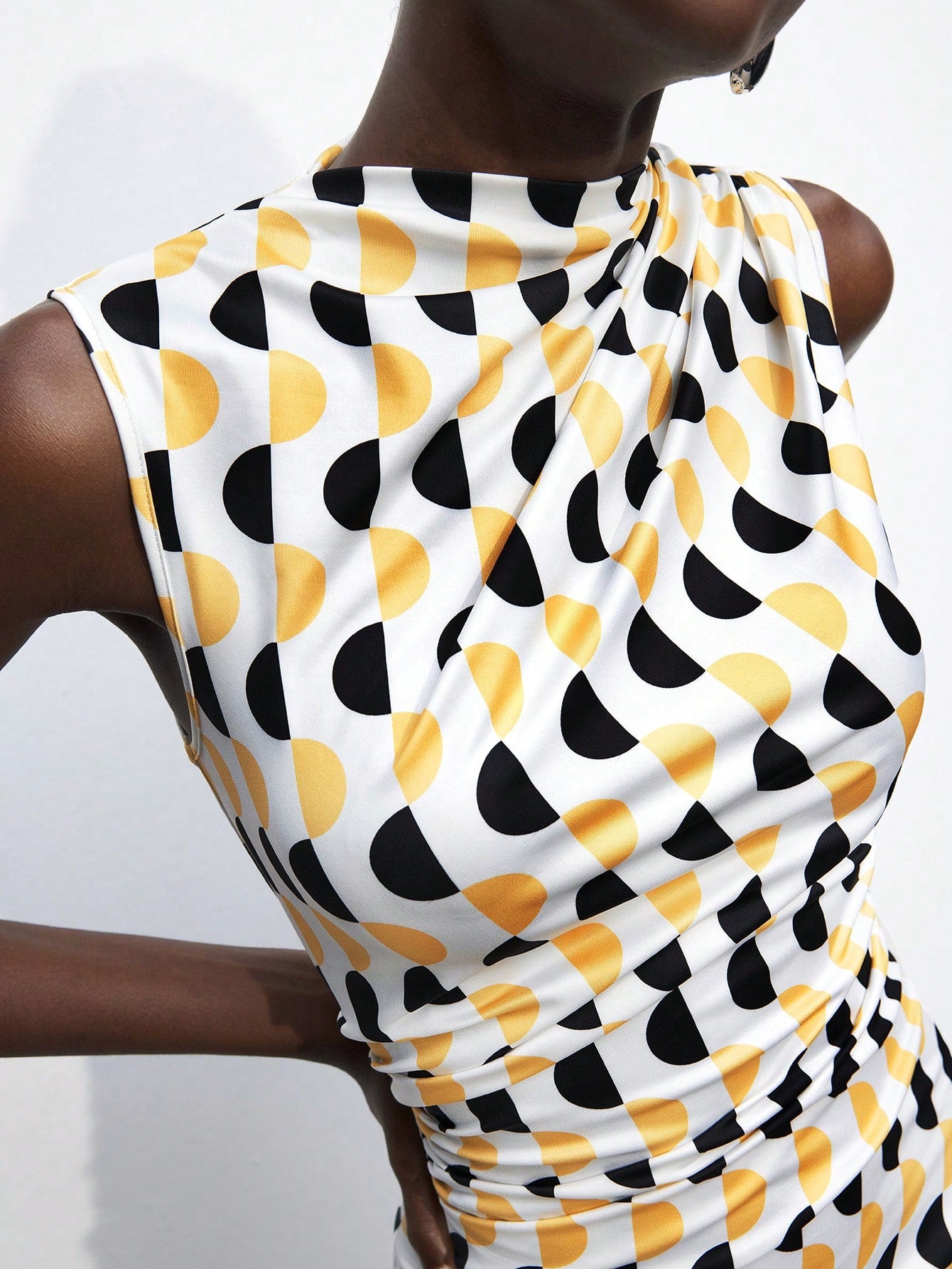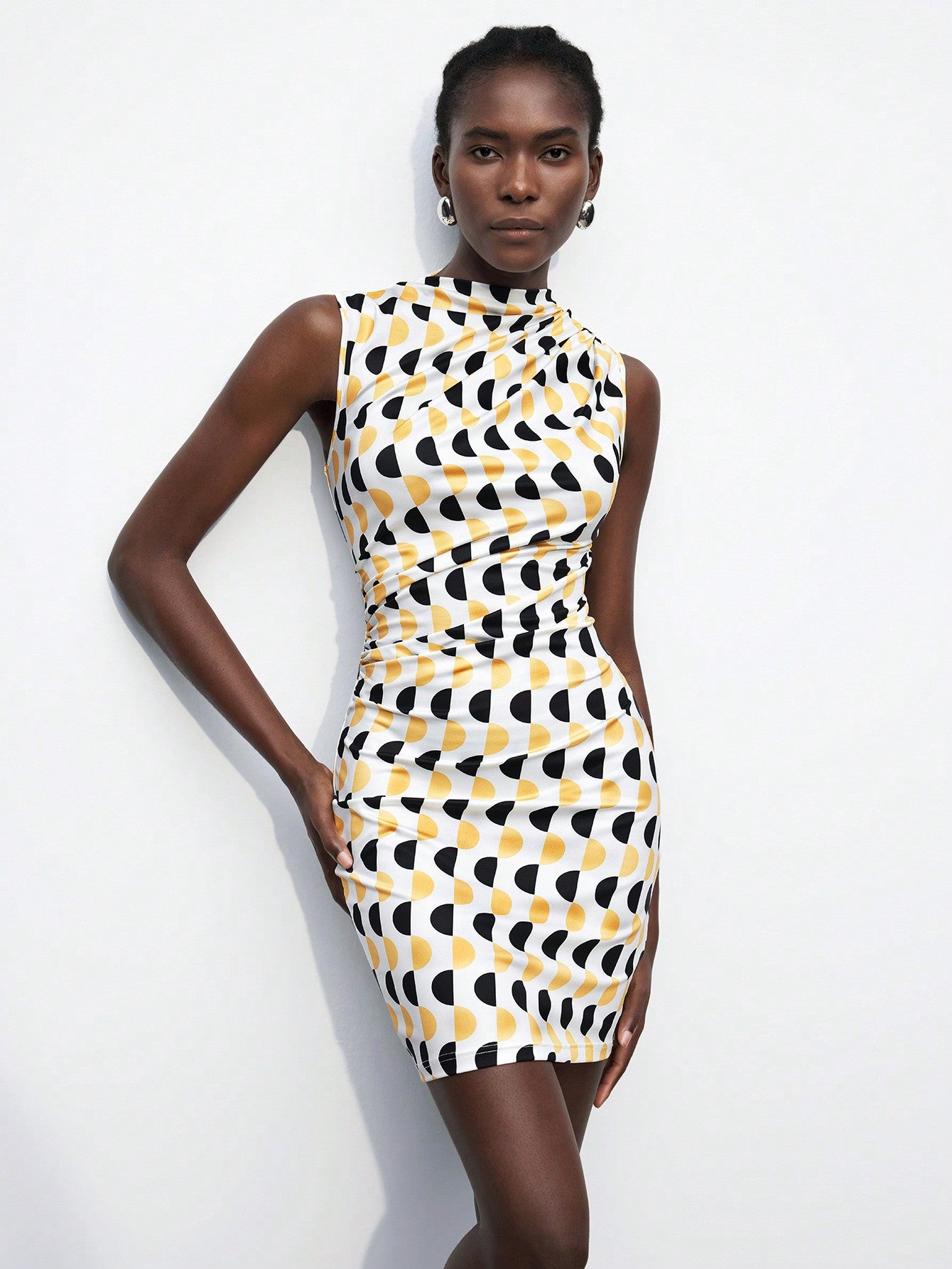 Introduce modern elegance to your wardrobe with our Chic Geometric Print Bodycon Mini Dress. With its stunning geometric print design, this dress is both visually striking and expertly crafted to flatter your figure. Transform any occasion into a stylish affair with this must-have dress.