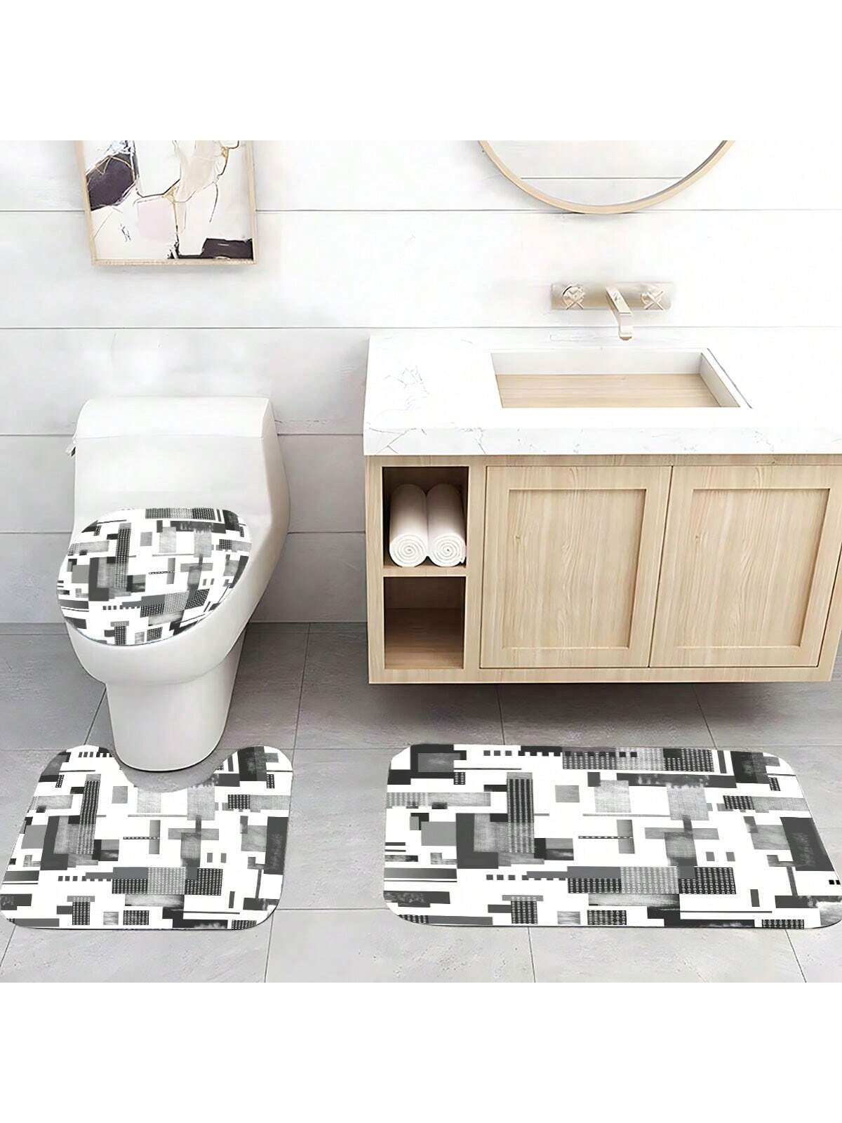 Chic Geometric Printed Shower Curtain Set: Elevate Your Bathroom Style!