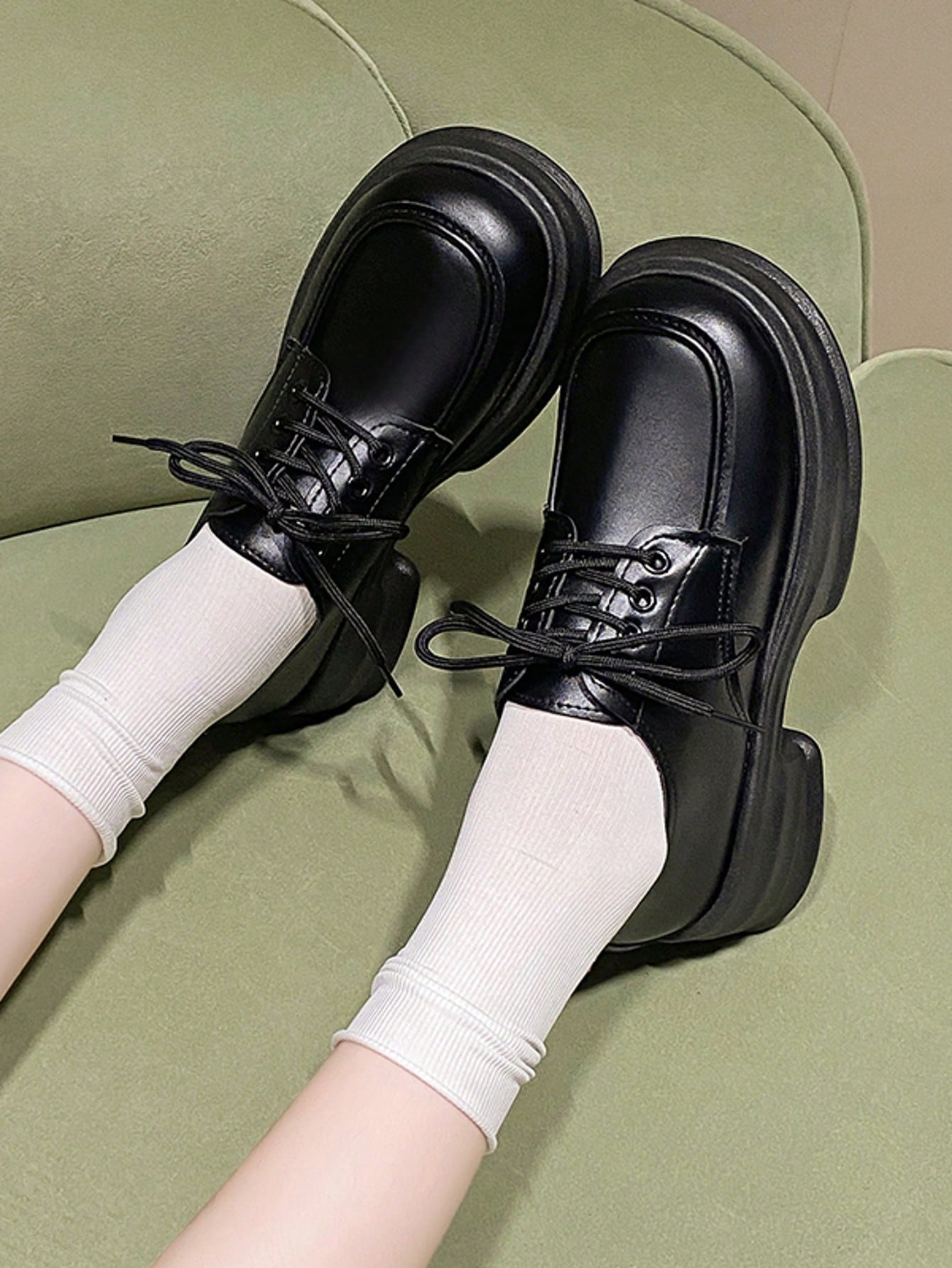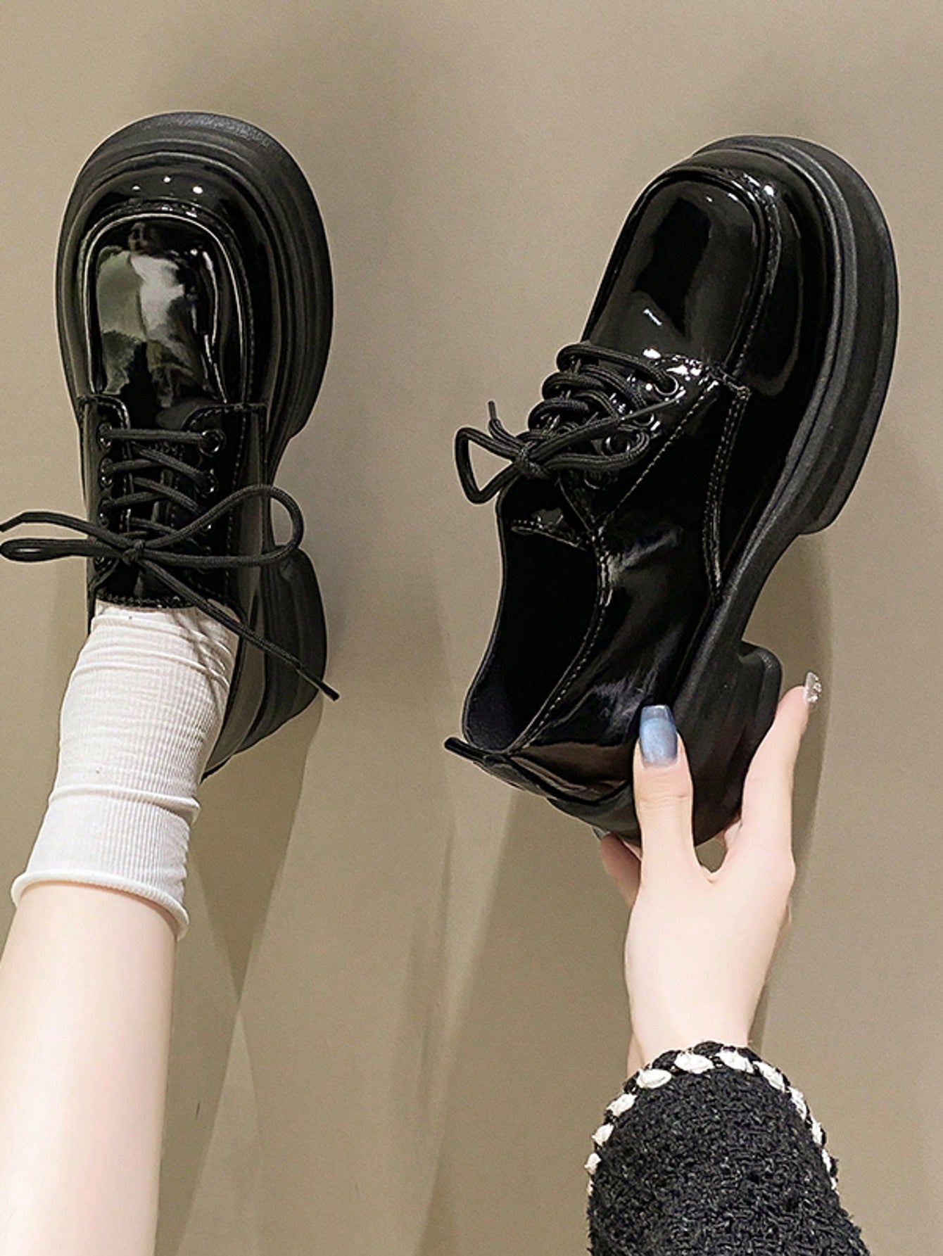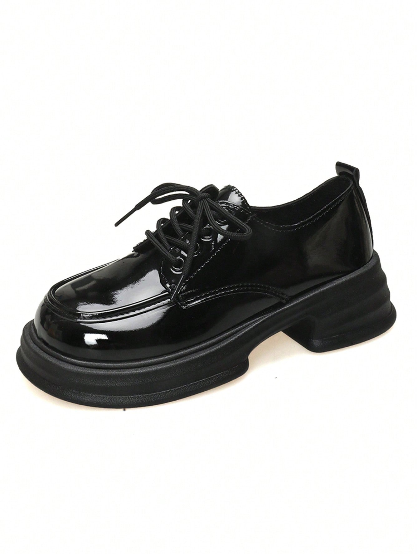 Chic Glossy Platform Oxfords: Versatile Lace-Up Shoes for Effortless Elegance
