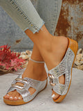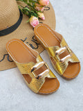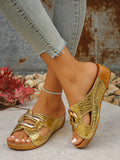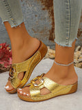 Chic Gold Platform Wedge Sandals with Crocodile Pattern & Metal Accents - Perfect for Summer Style!