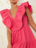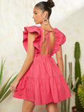 Chic Haute Backless Ruffle Trim Dress - Elegantly Tied for Effortless Style