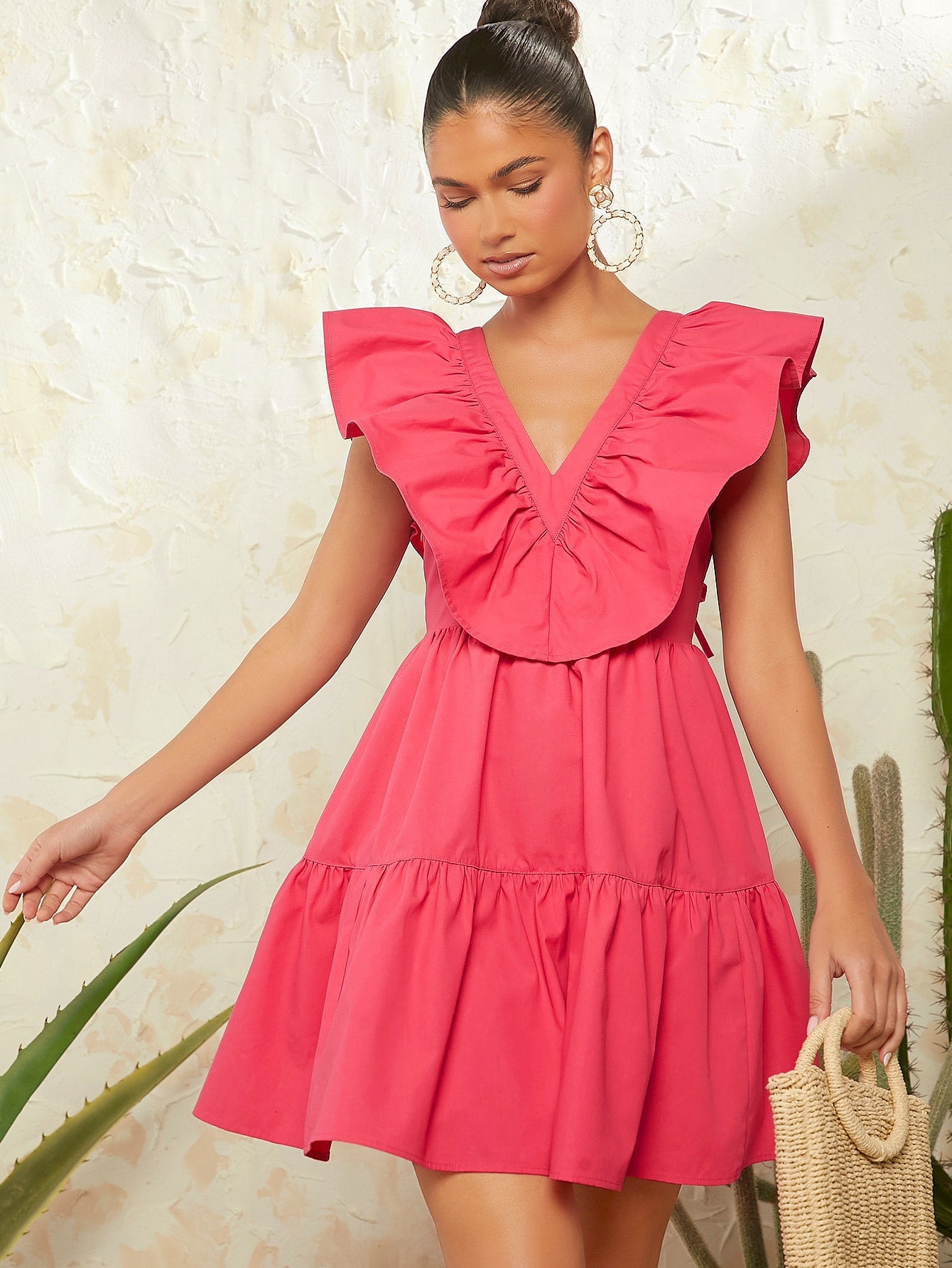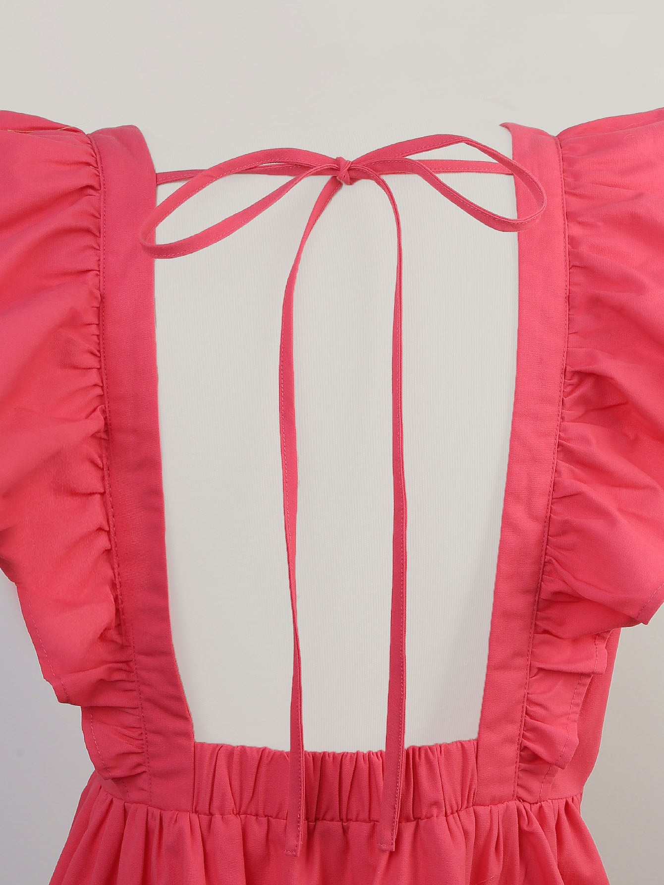 Details : Backless, Ruffle Hem, Knot, Exaggerated Ruffle