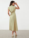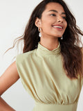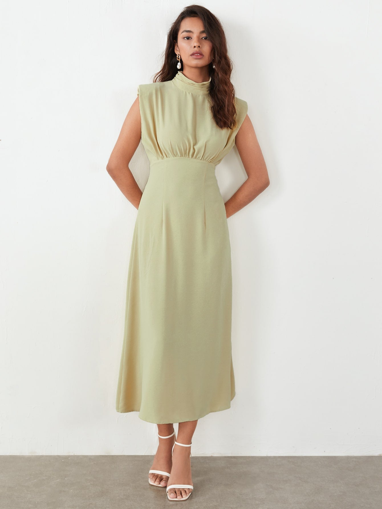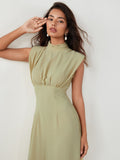 Chic High-Neck Shoulder Pad Dress - Perfect for Professional Workwear!