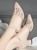Chic Hollow-Out Pointed Toe Chunky Heel Slip-On Pumps for Women