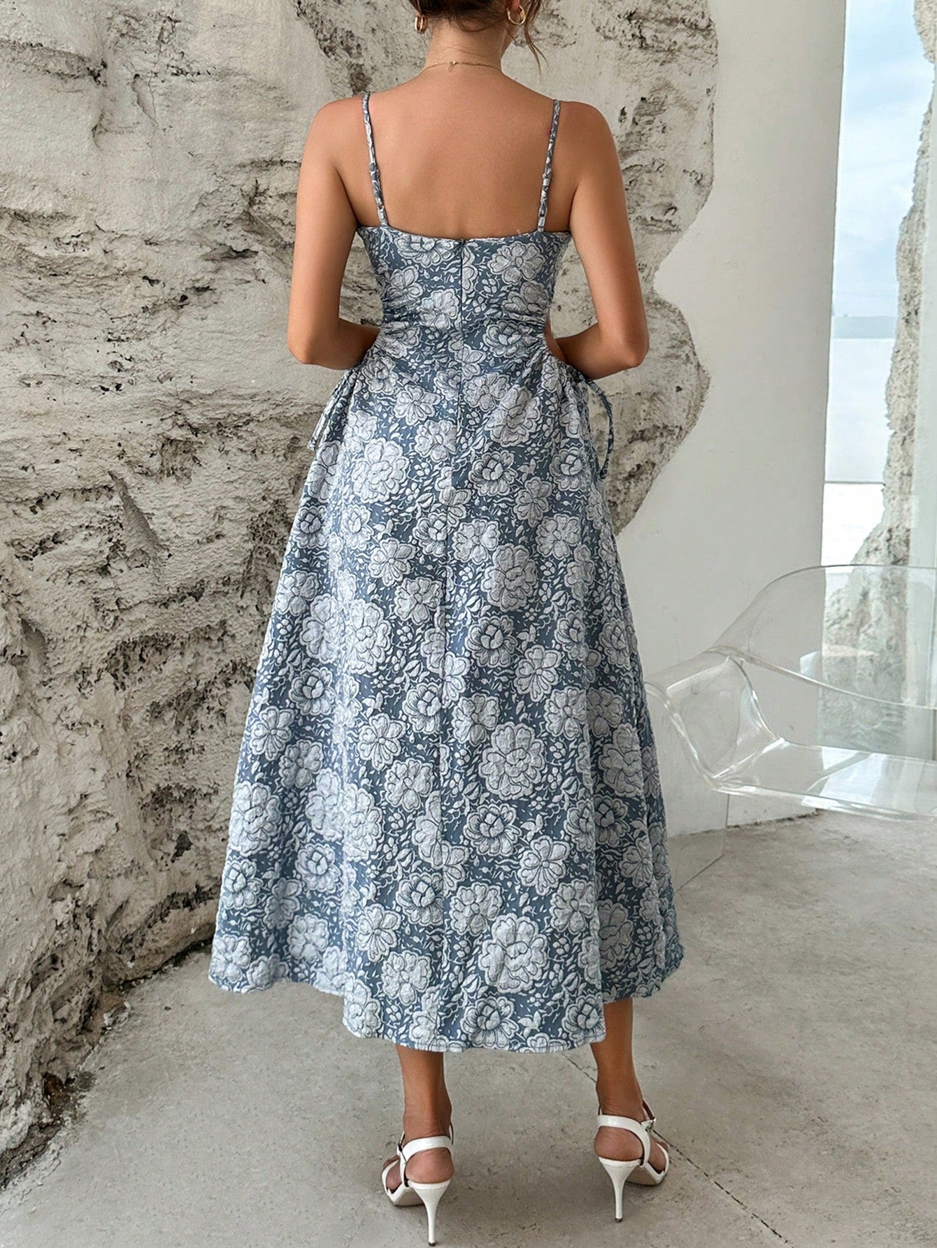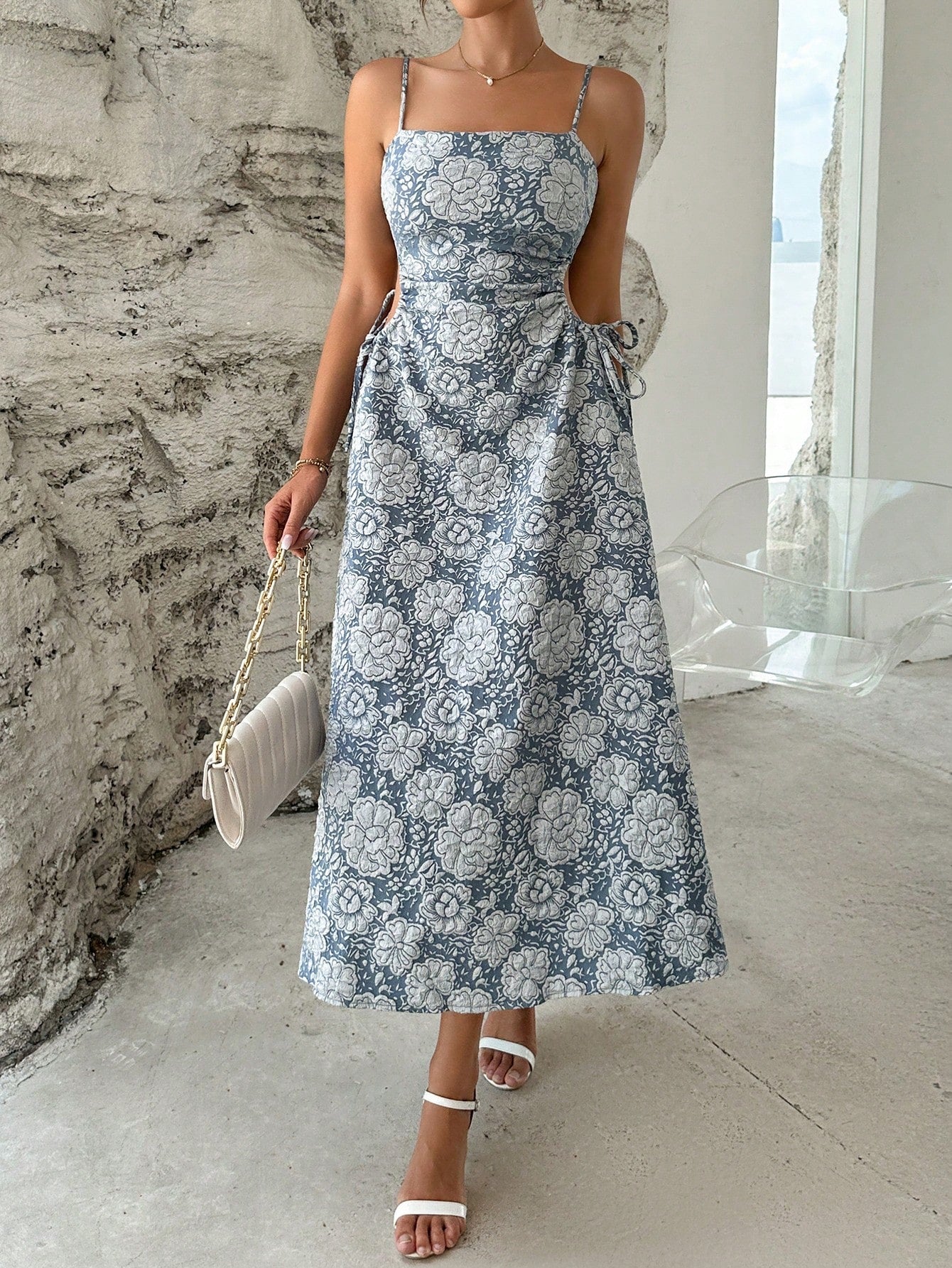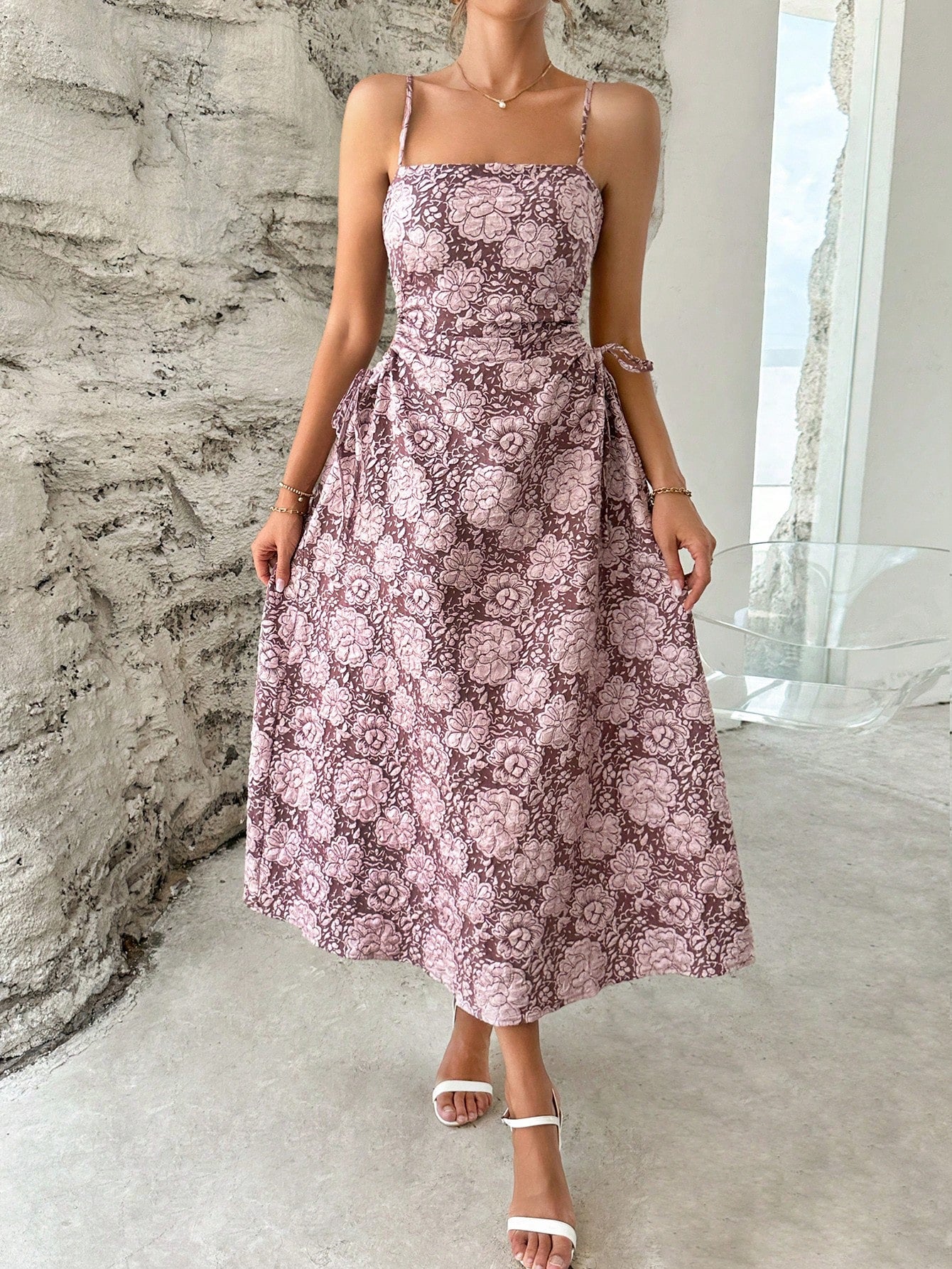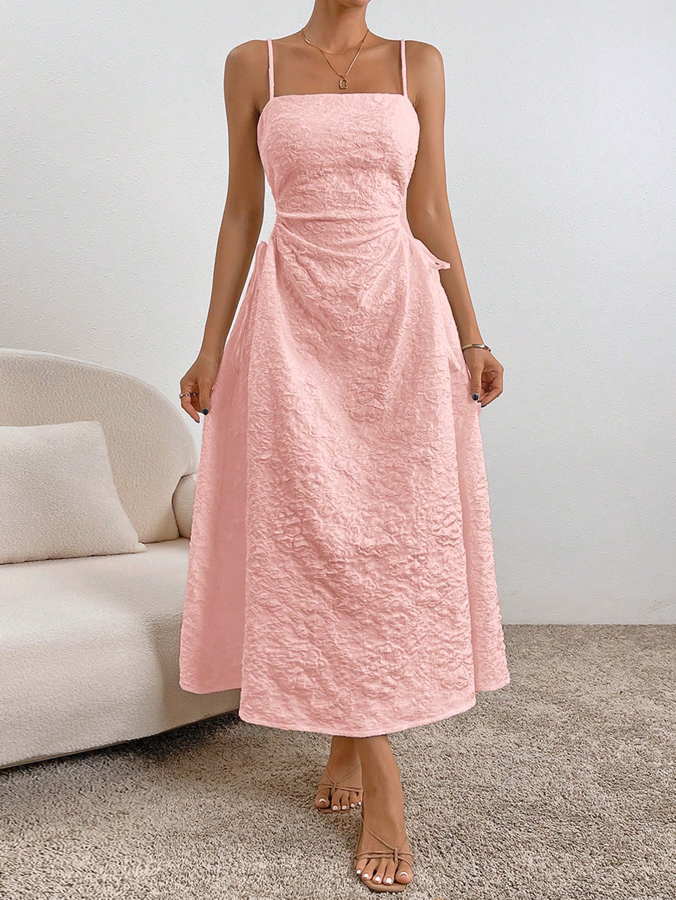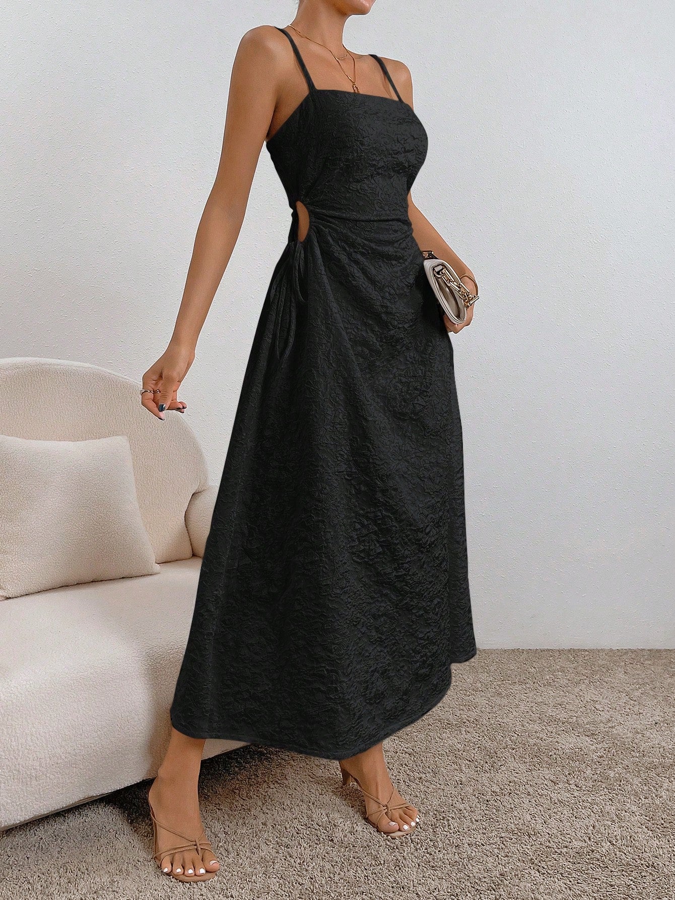 Chic Jacquard Cut-Out Backless Cami Dress in Lilac Purple