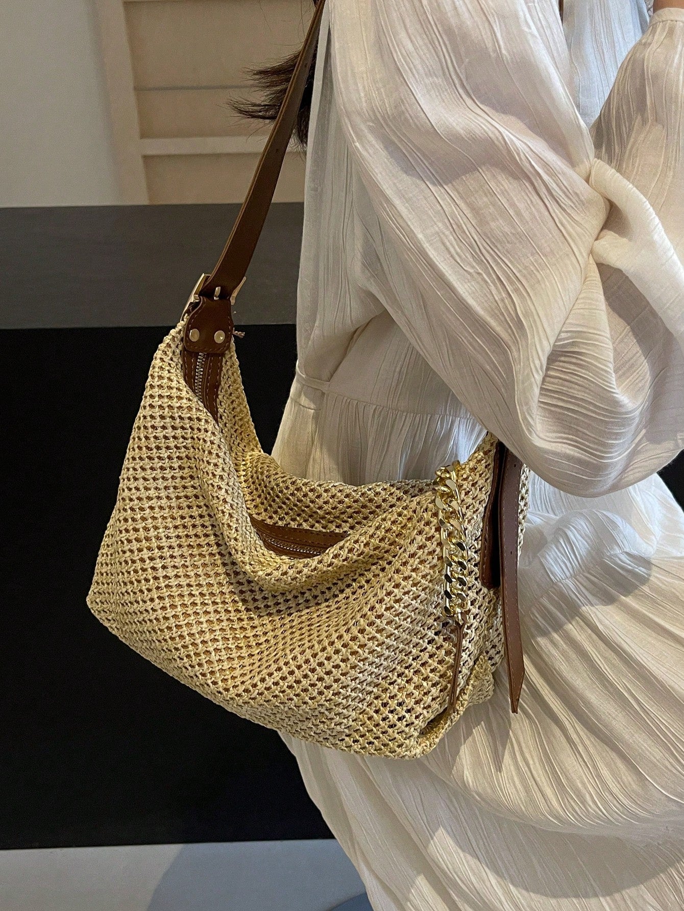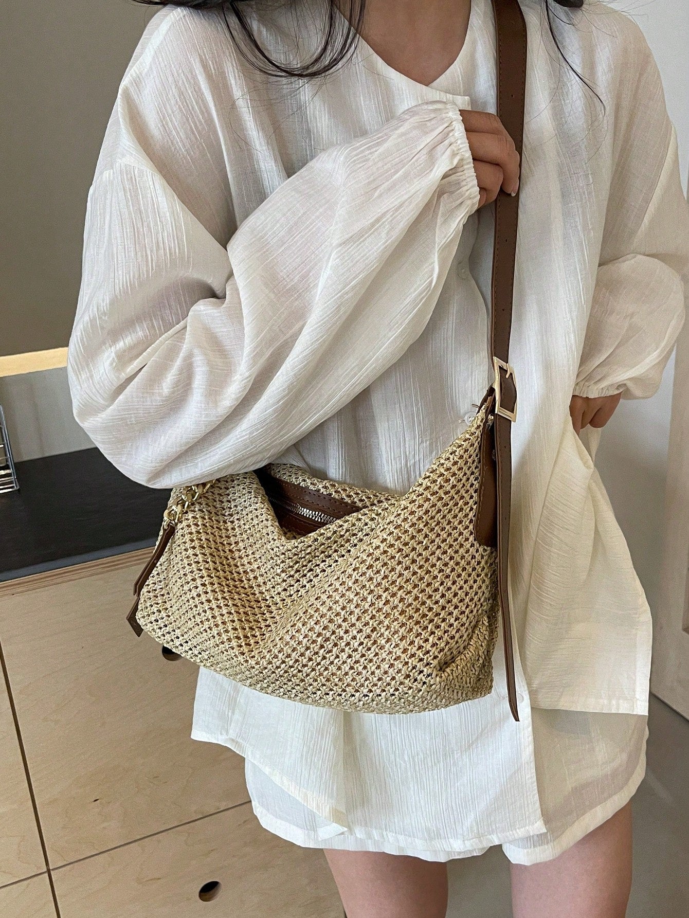 Chic Khaki Woven Bag: The Perfect Vintage Summer Accessory