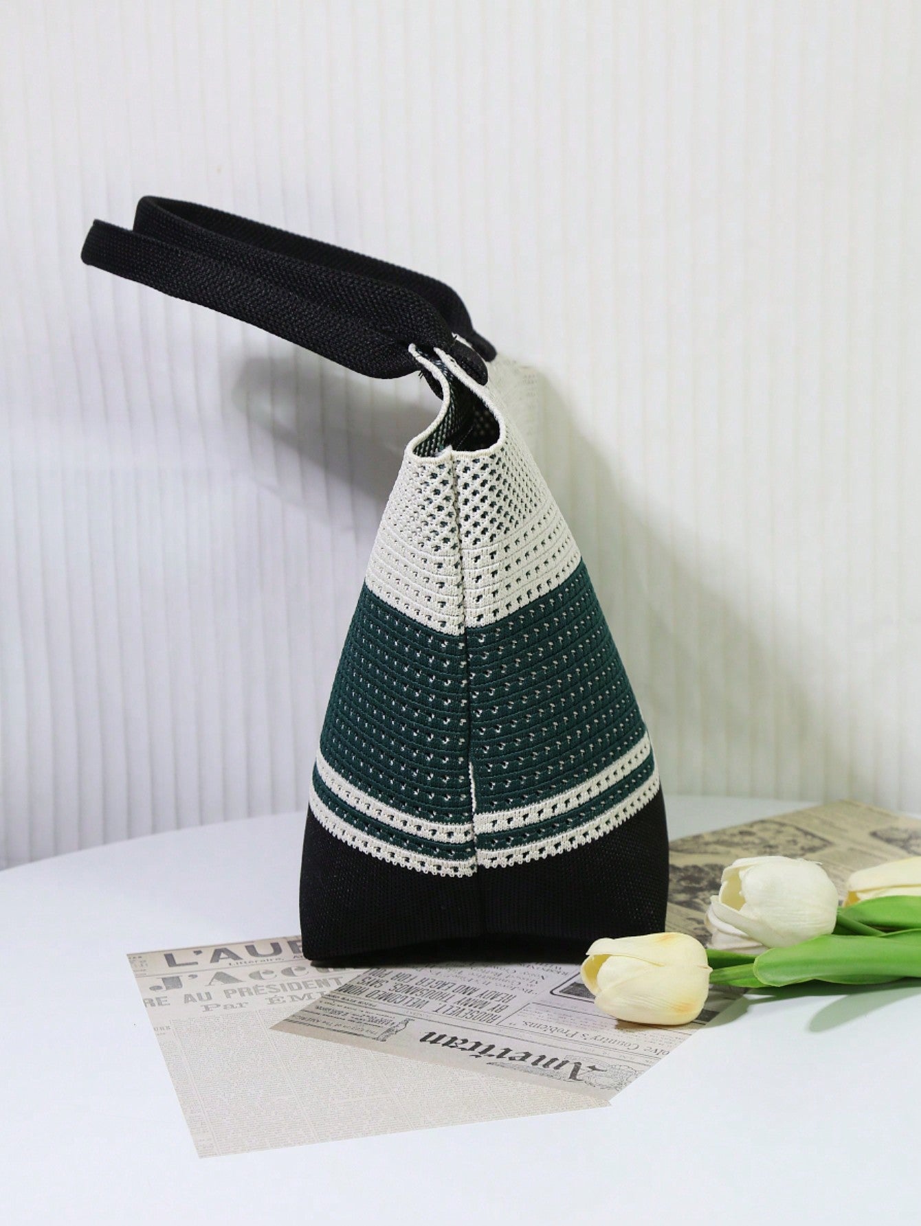 Chic Knitted Bucket Bag: Stylish Portable Storage for On-the-Go