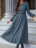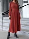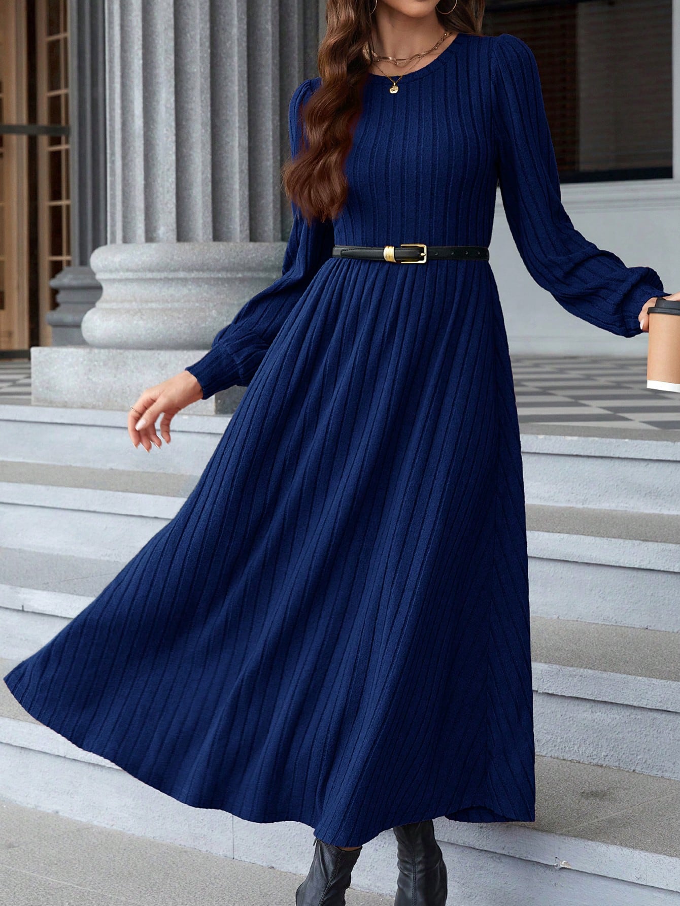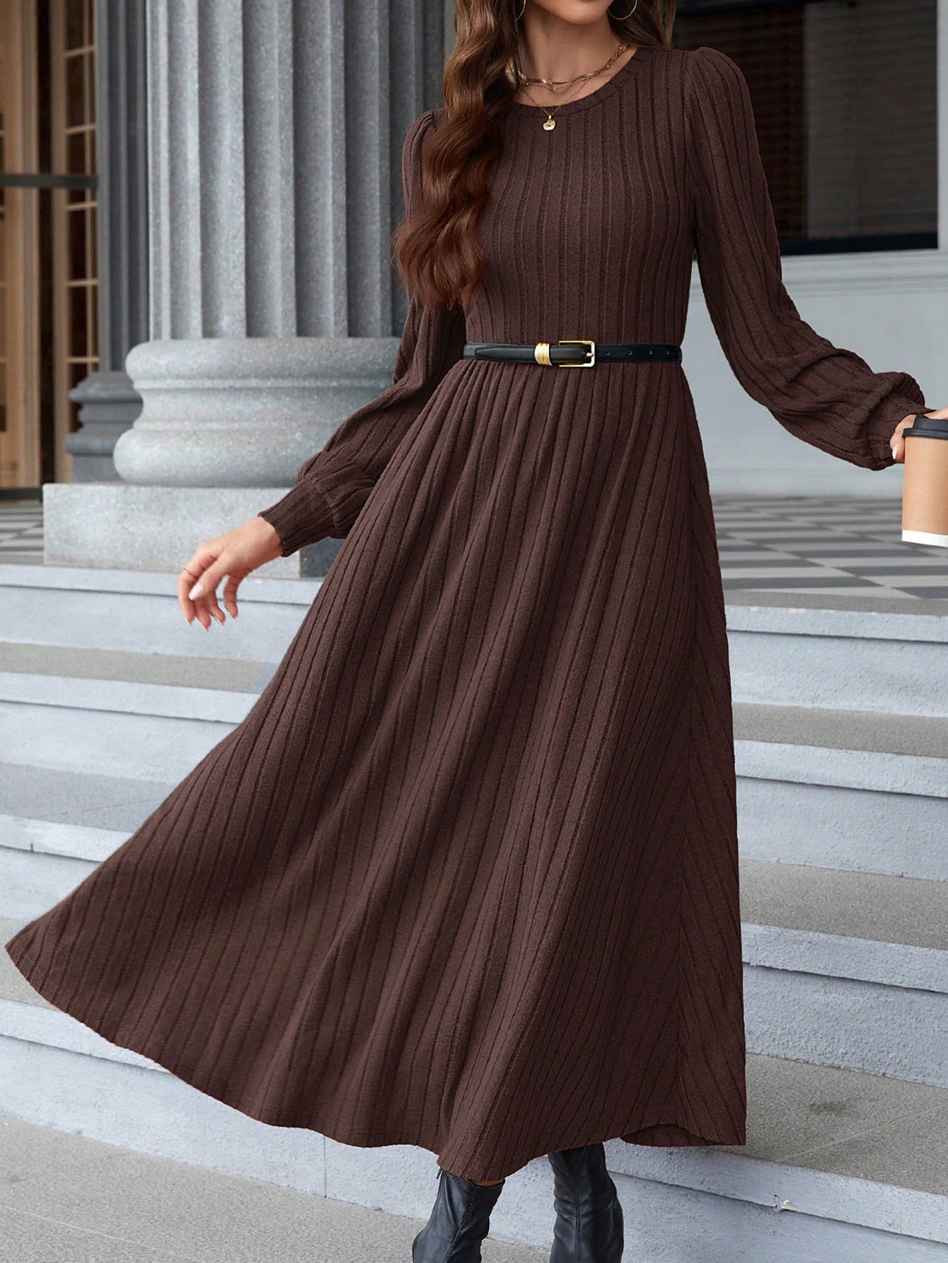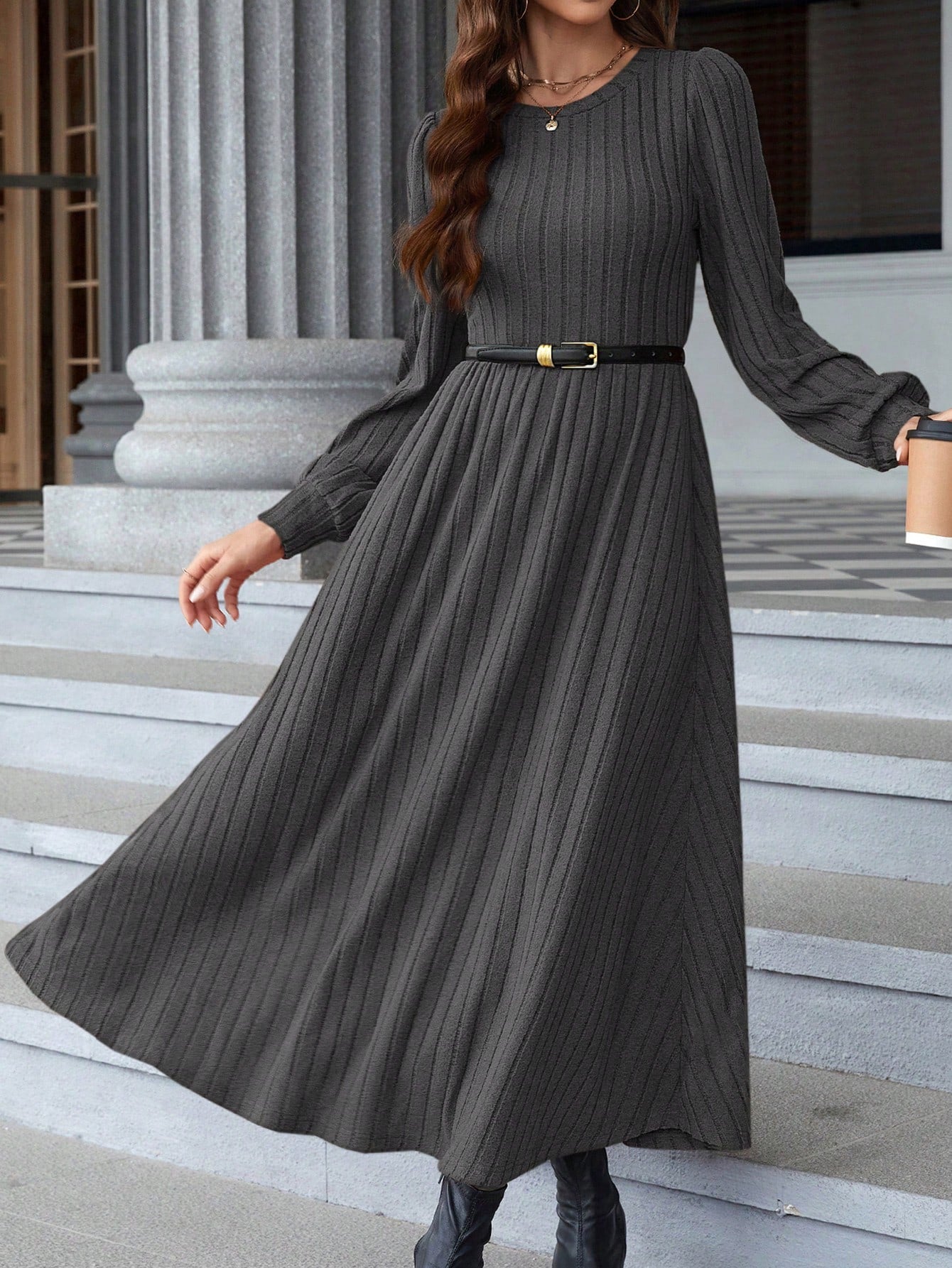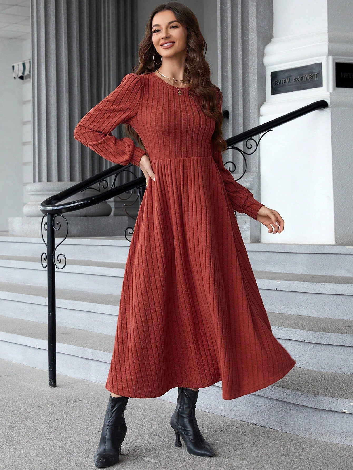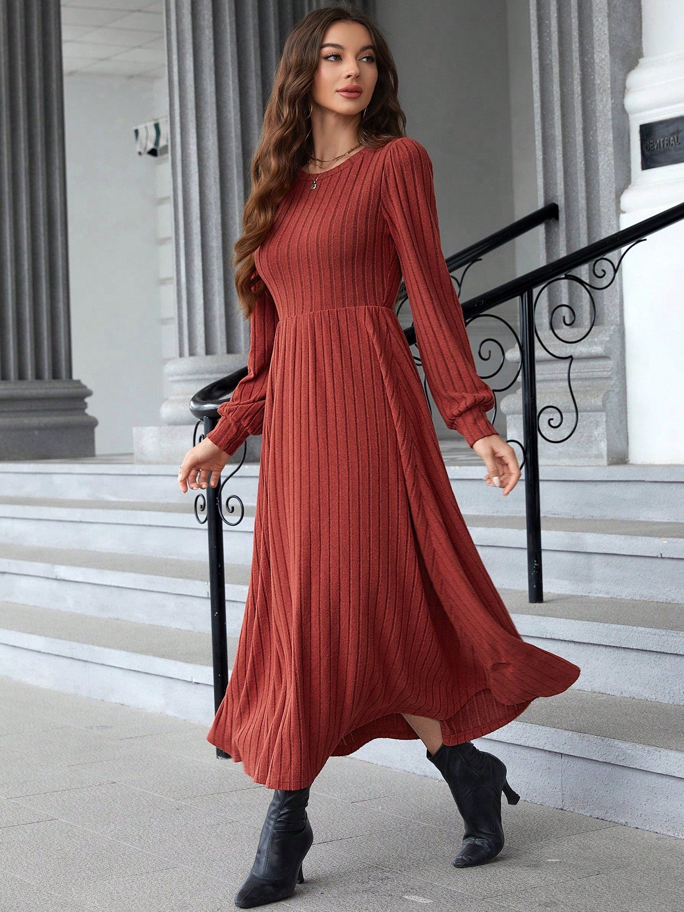 Chic Lantern Sleeve Bodycon Dress - Ember Red Ribbed Winter Elegance