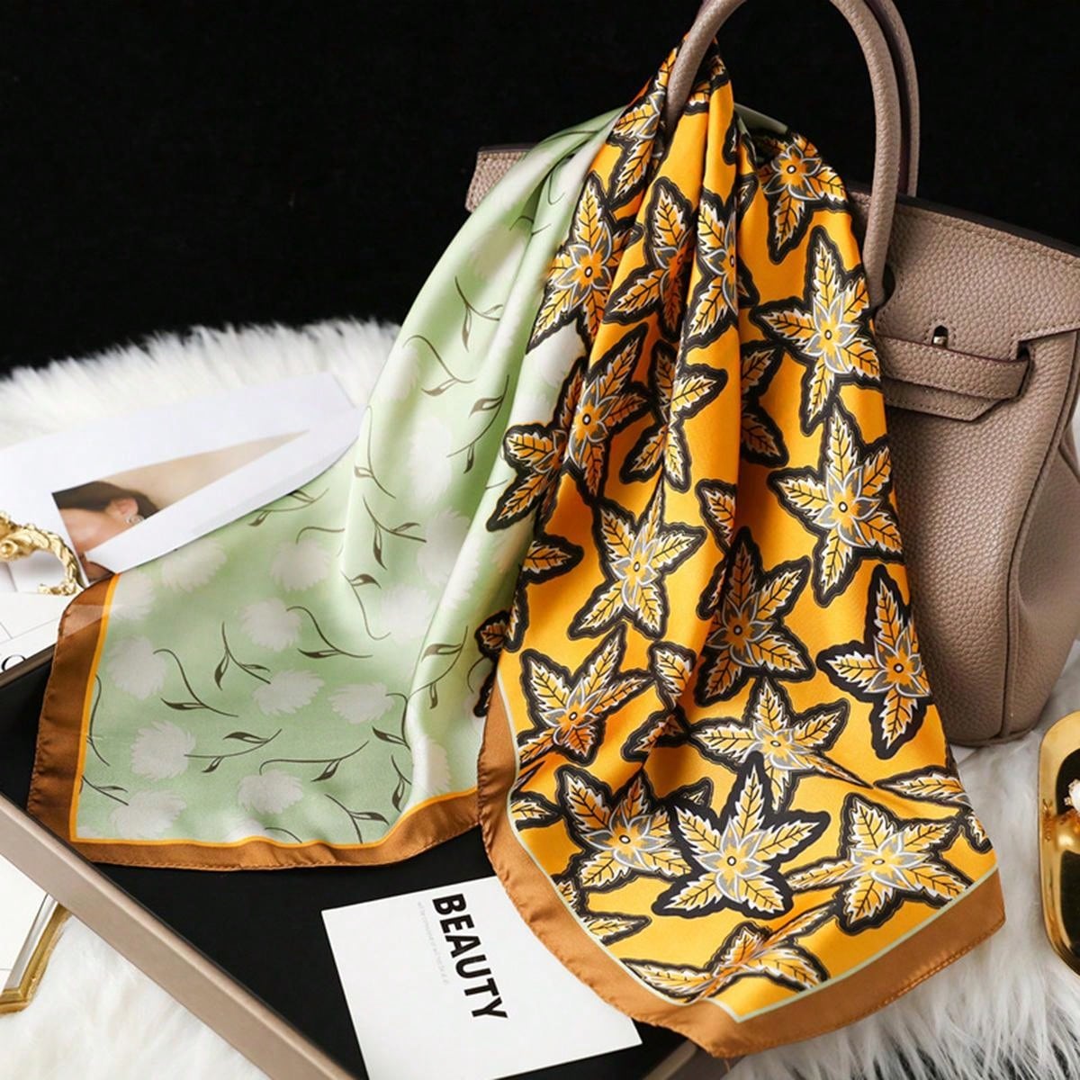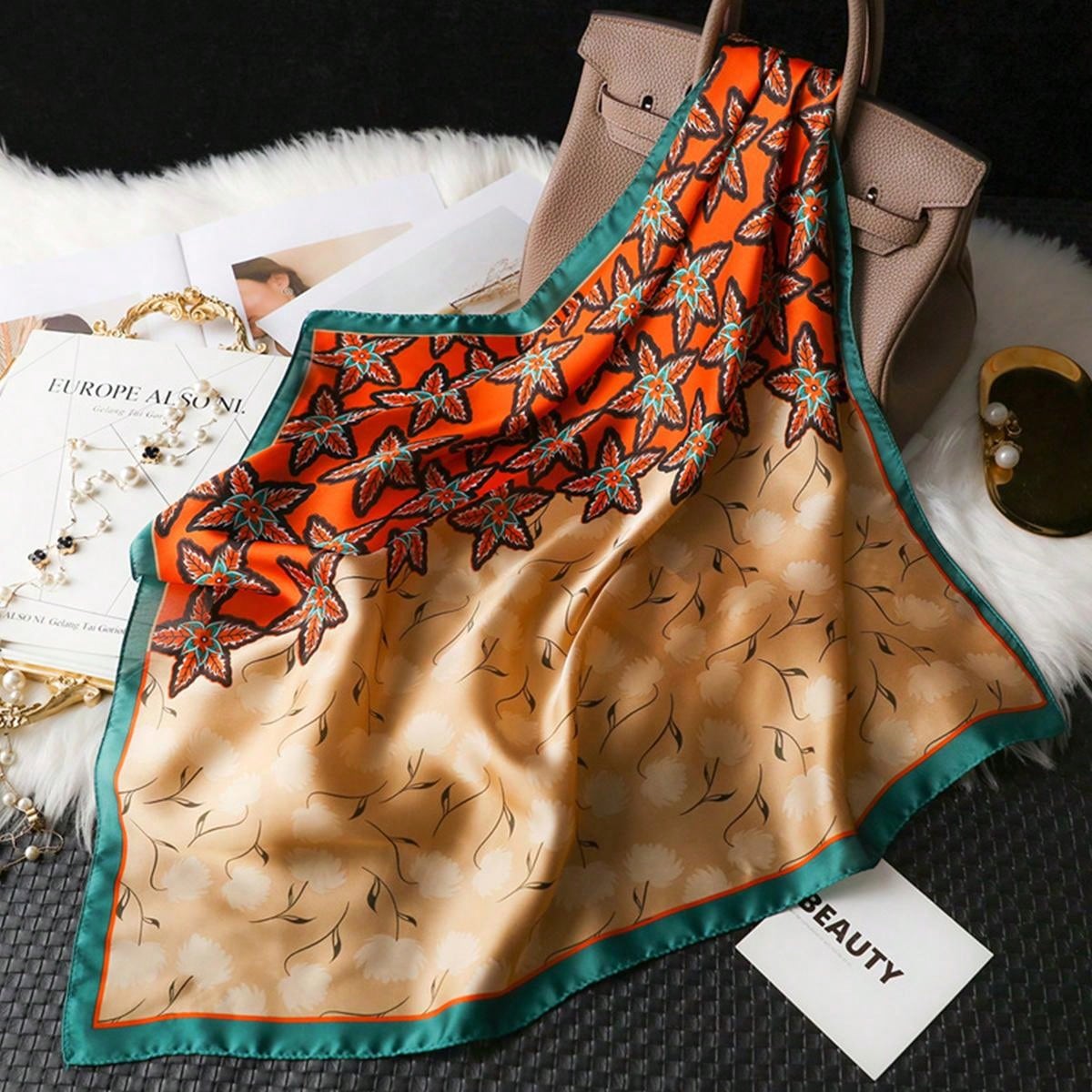 Chic Leaf Print Silk Bandana: A Must-Have Style Accessory for Women