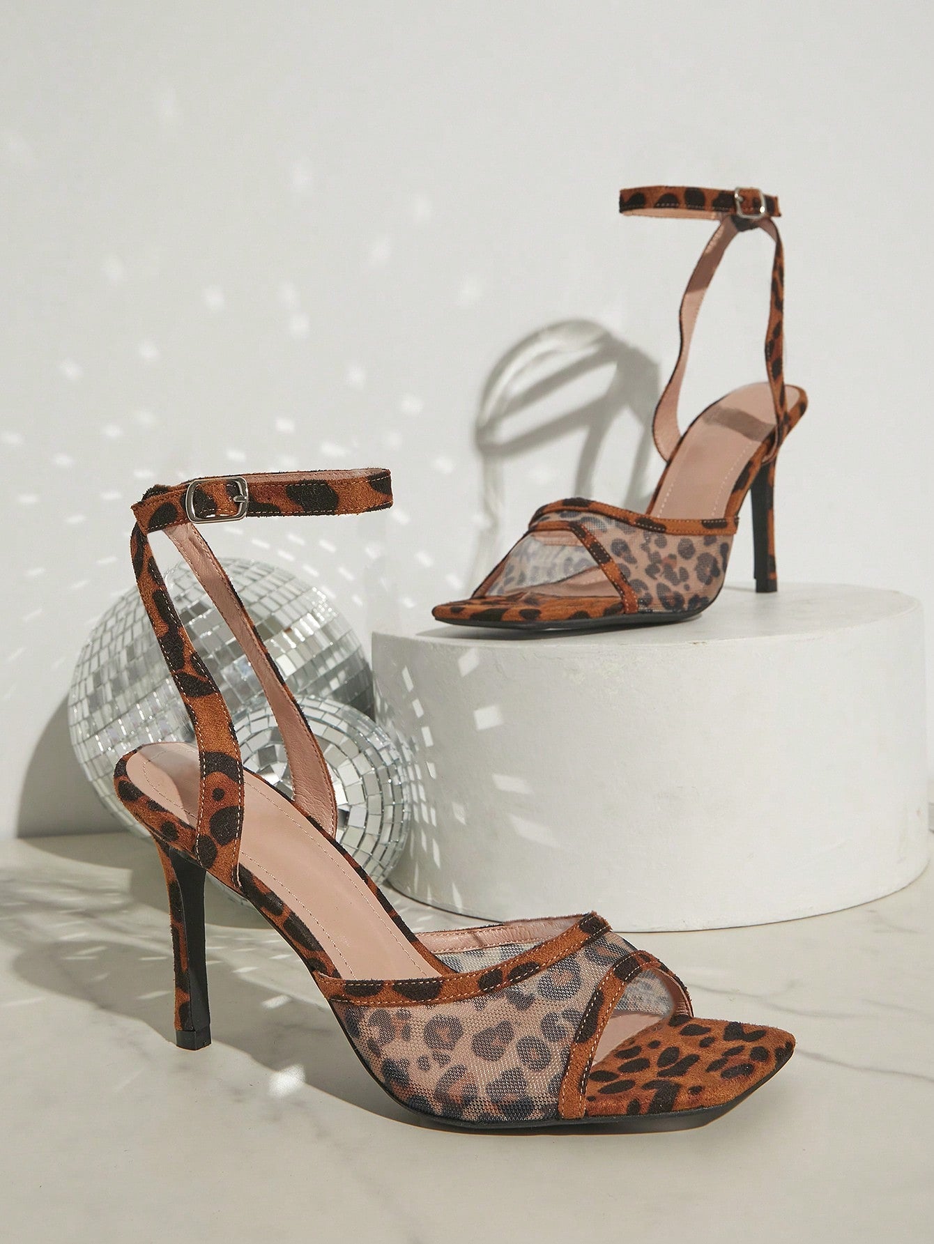 Chic Leopard Mesh Ankle Strap High Heel Sandals for Trendy Women