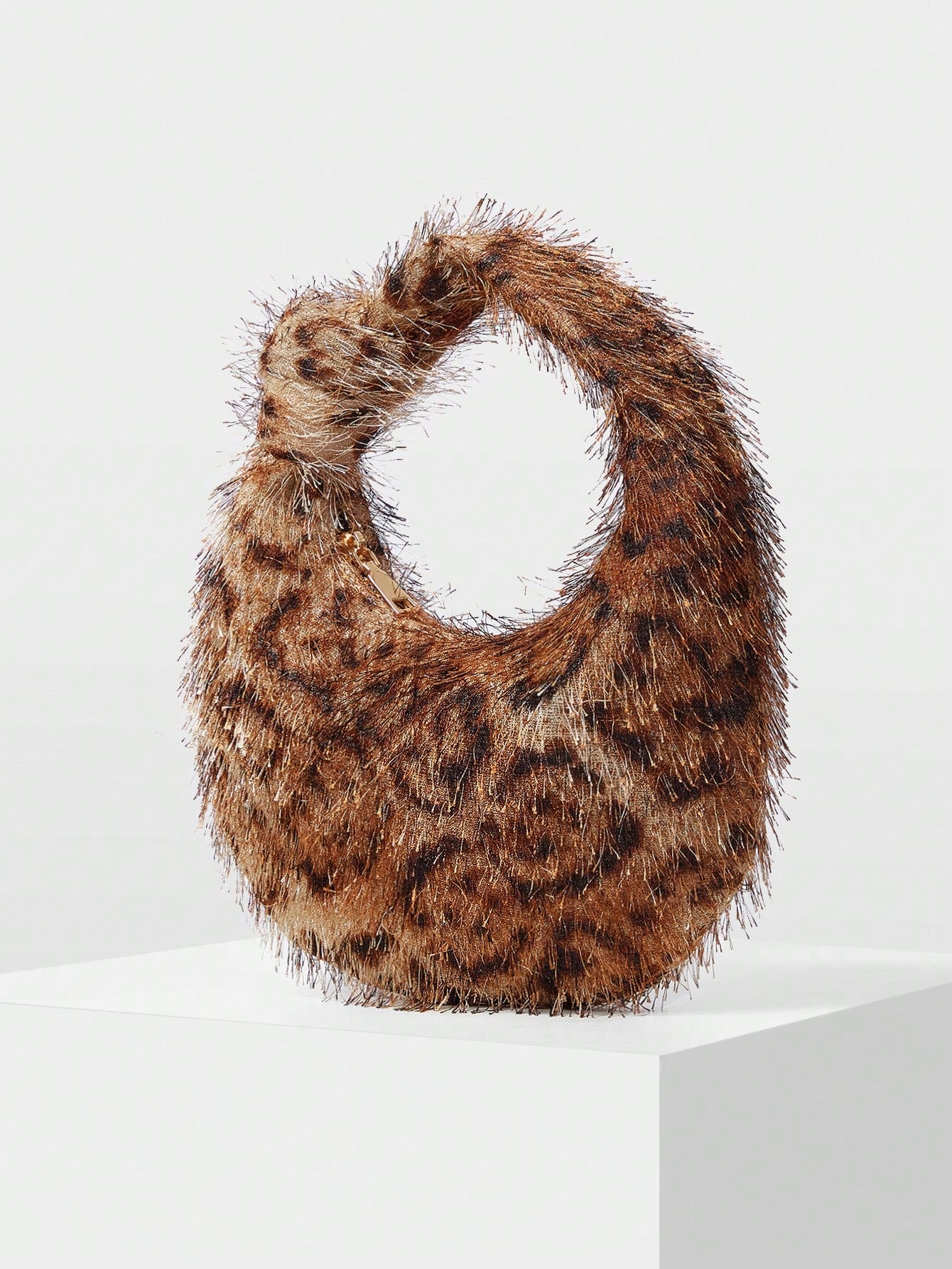 Chic Leopard Print Faux Fur Puffy Handbag – Elevate Your Style