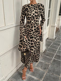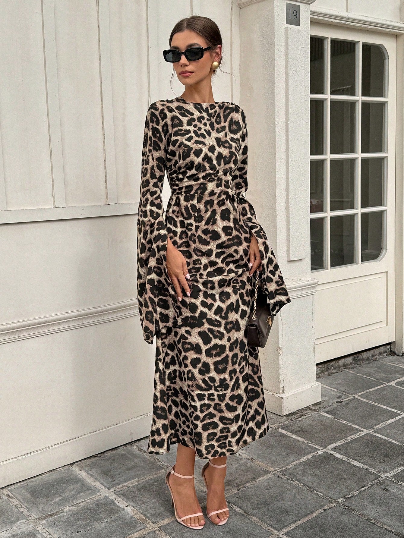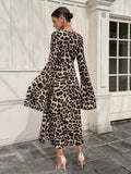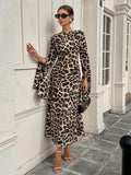 Chic Leopard Print Ruffle Sleeve Split Dress - Elegant Party Essential