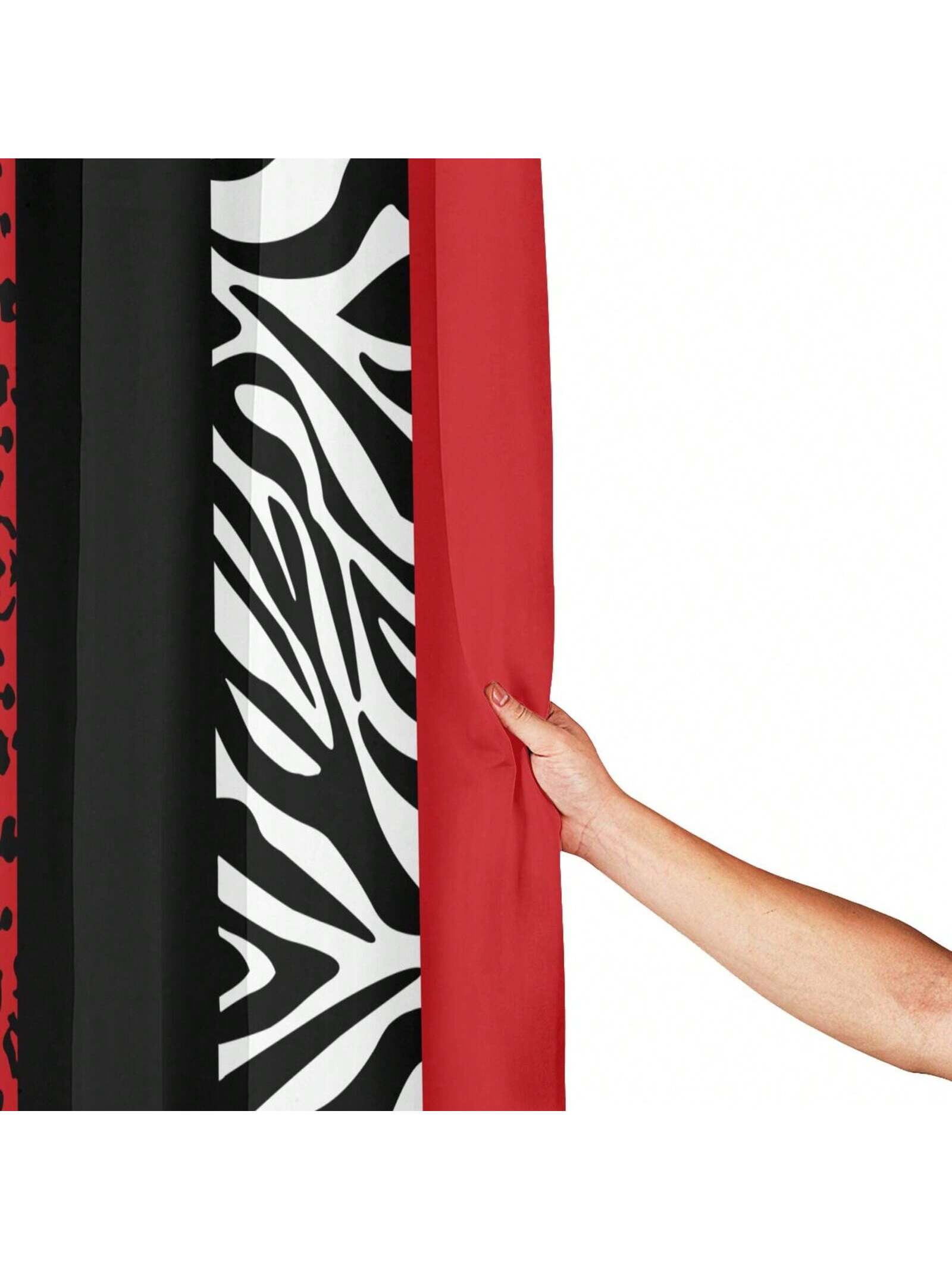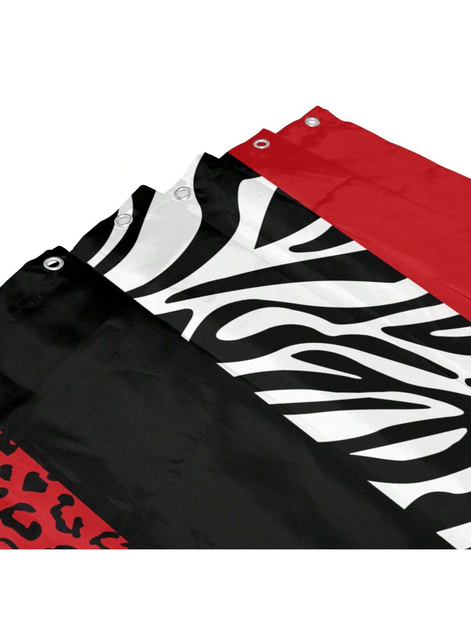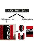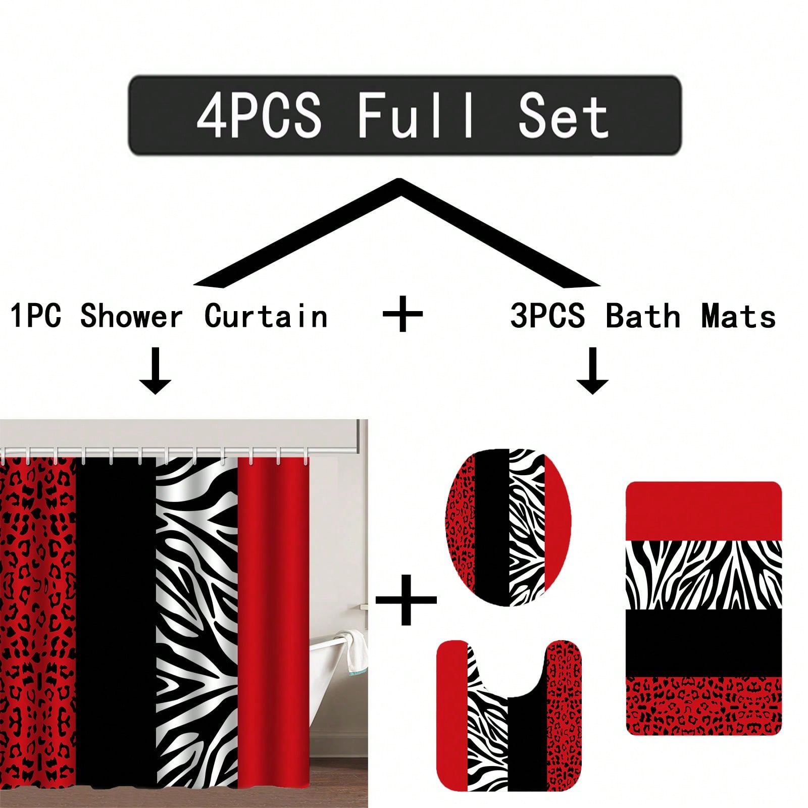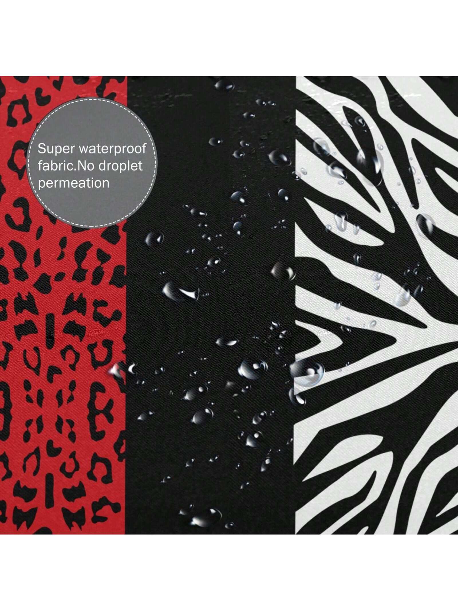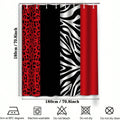 Chic Leopard Print Shower Curtain Set – Black & White with Red Stripes | Stylish Bathroom Decor