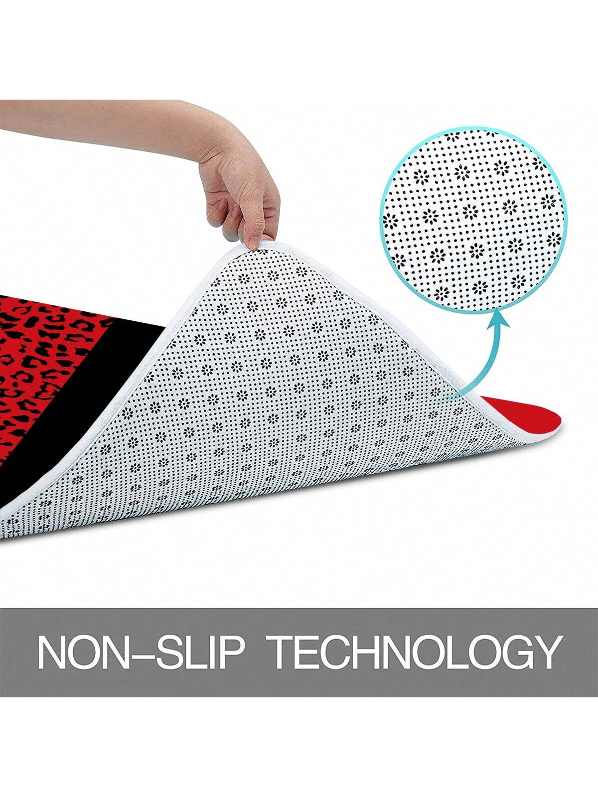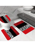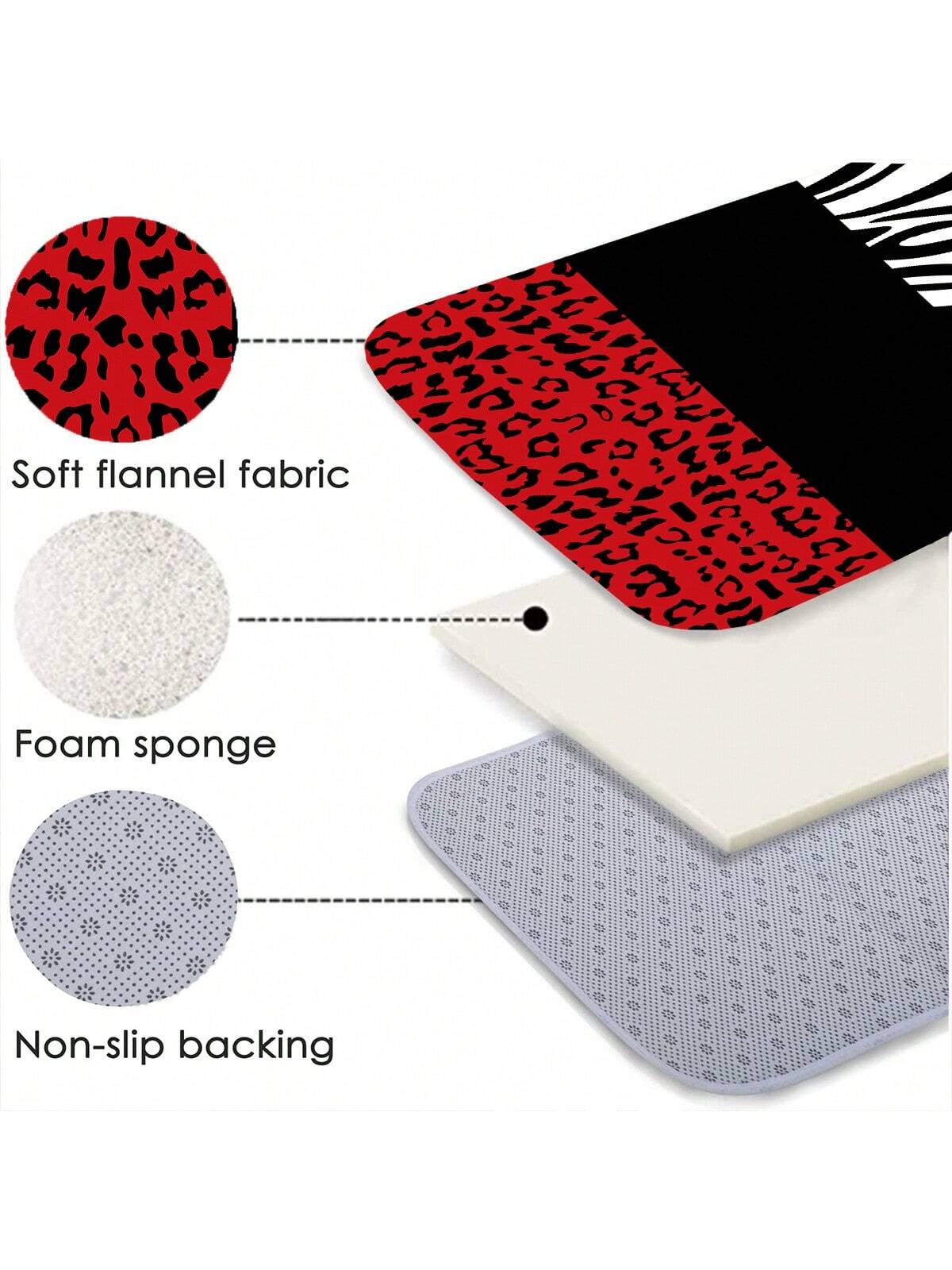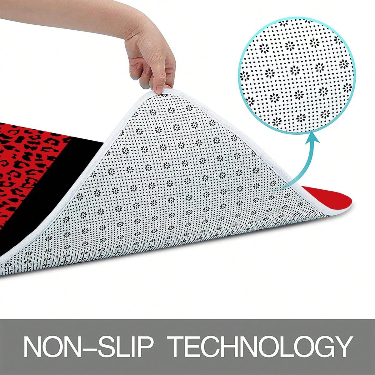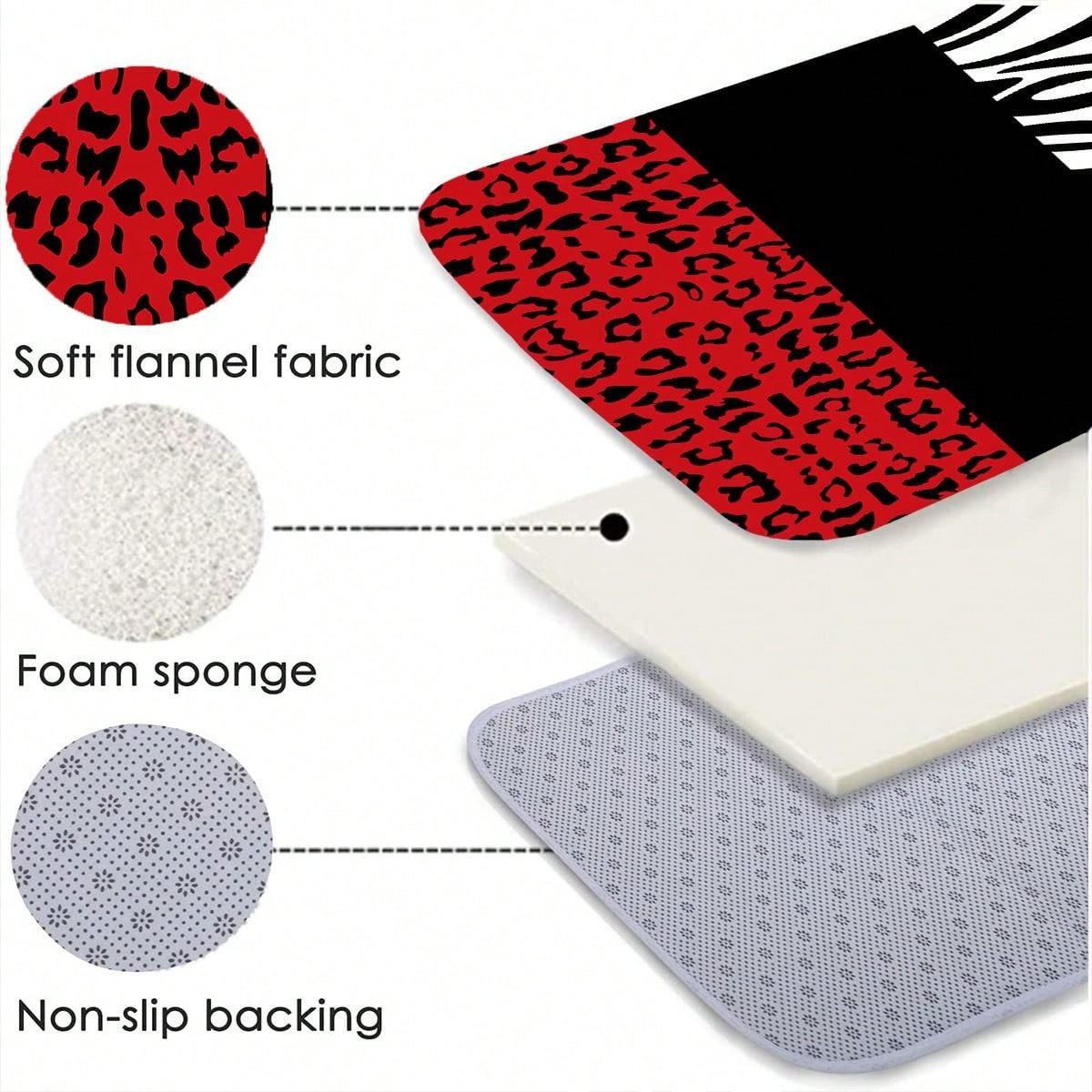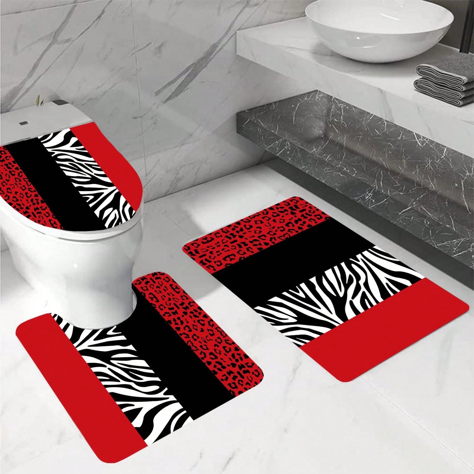 Chic Leopard Print Shower Curtain Set – Black & White with Red Stripes | Stylish Bathroom Decor