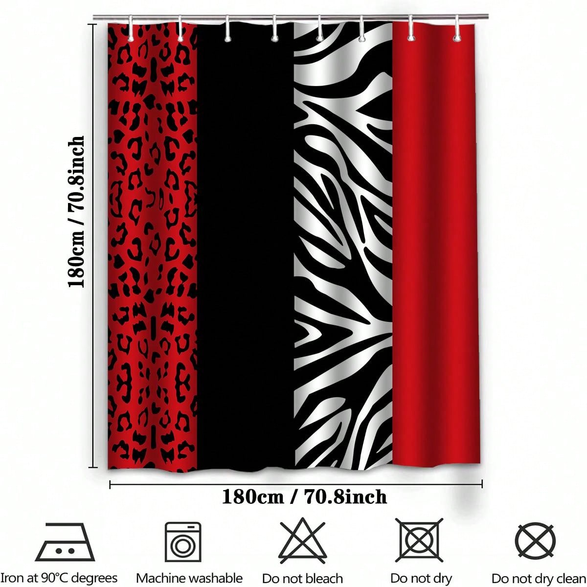 Upgrade your bathroom decor with our Chic Leopard Print Shower Curtain Set – featuring a stylish black and white pattern, accented with bold red stripes. This elegant set will make a statement in any bathroom. Don't settle for boring shower curtains, add some personality and style to your space.