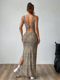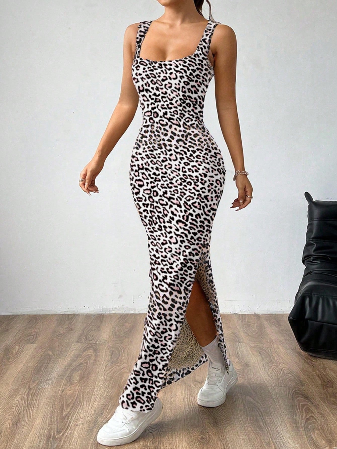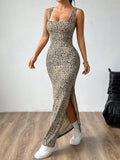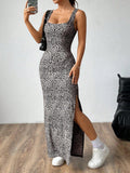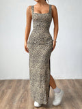 Chic Leopard Print Sleeveless Maxi Dress with High Slit - Perfect for Summer