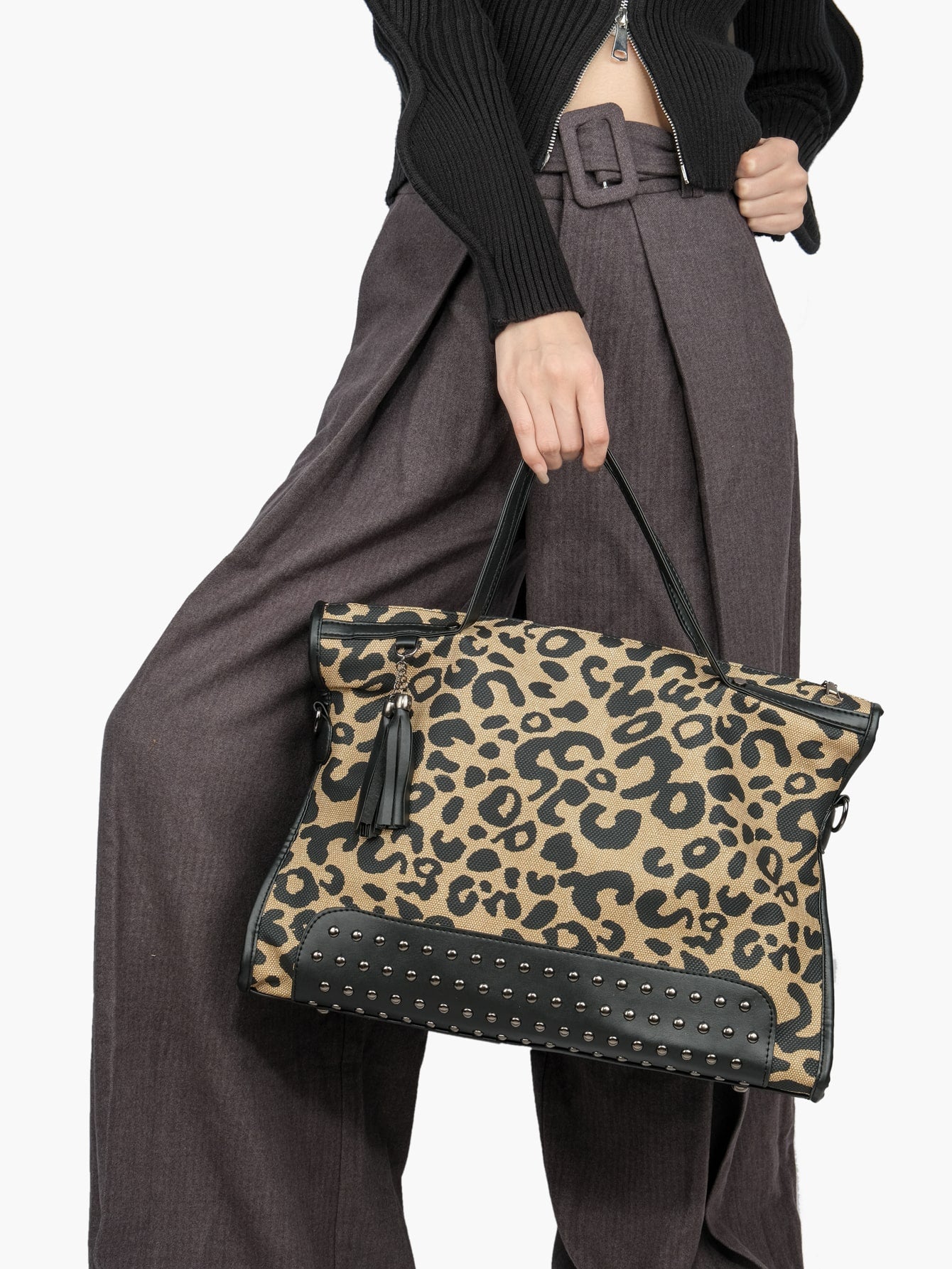 Chic Leopard Studded Shoulder Tote Bag - The Perfect Gift for Trendy Women & Girlfriends