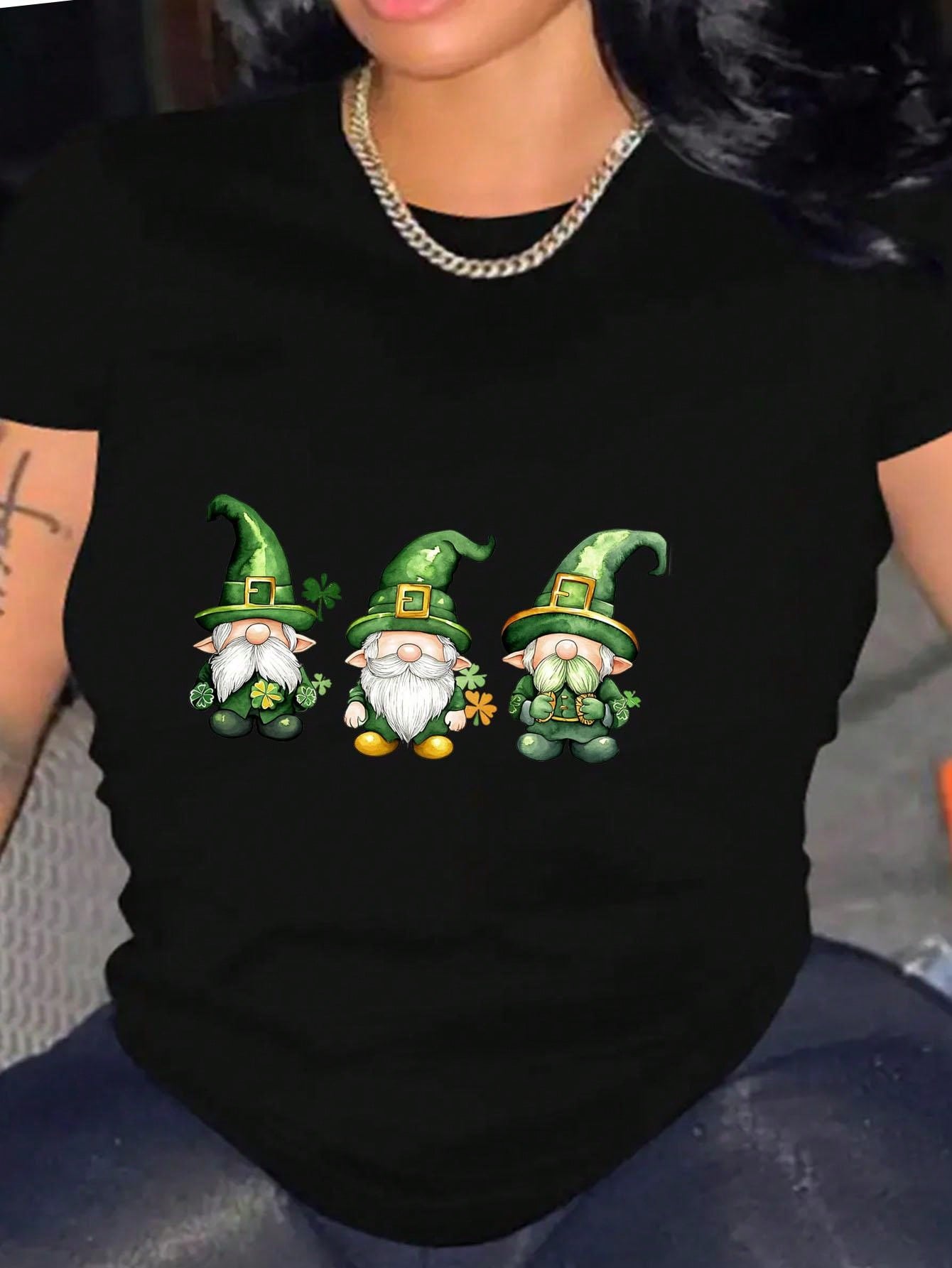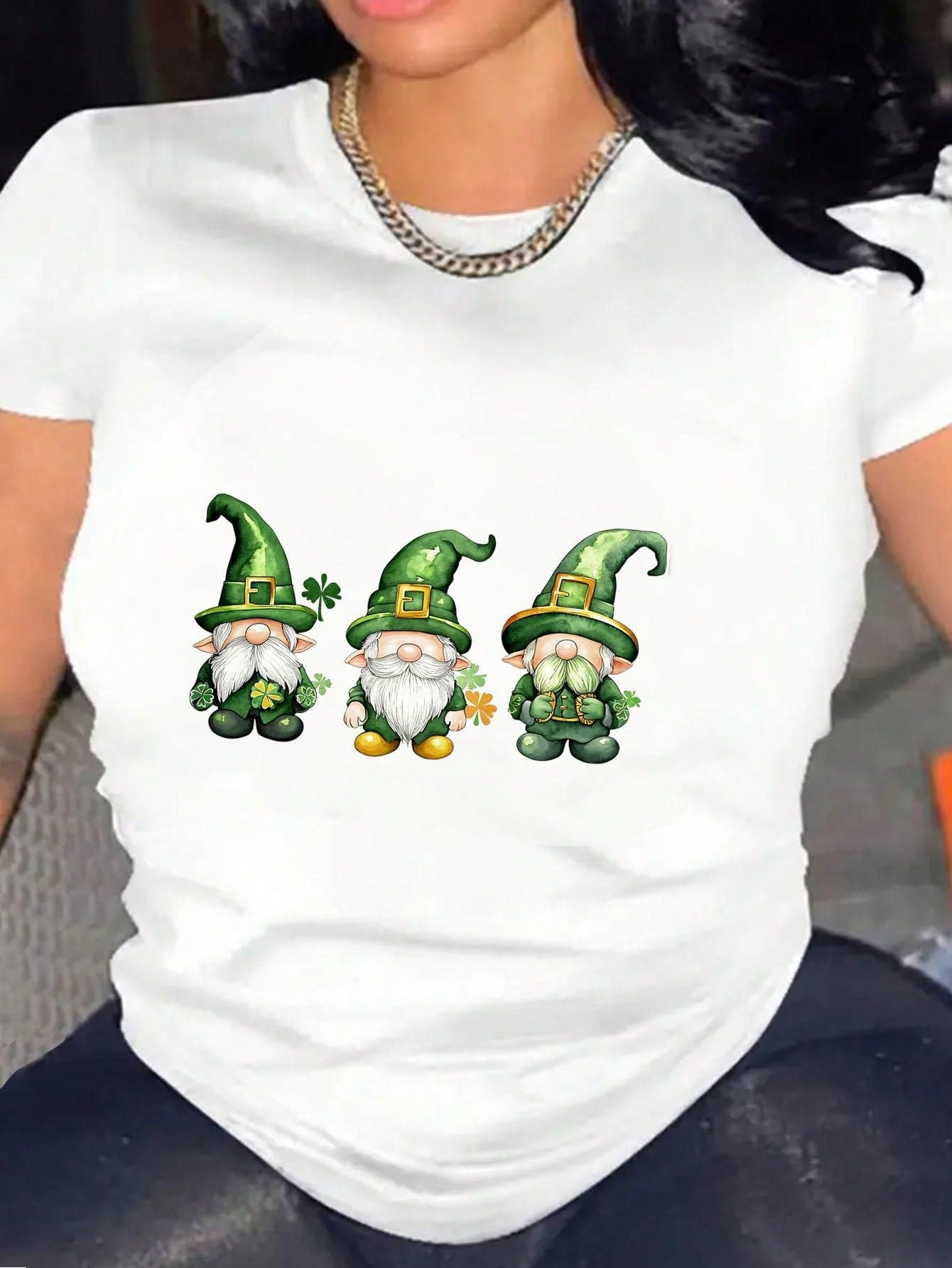 Chic Luck: Women's Four-Leaf Clover Graphic Crew Neck T-Shirt