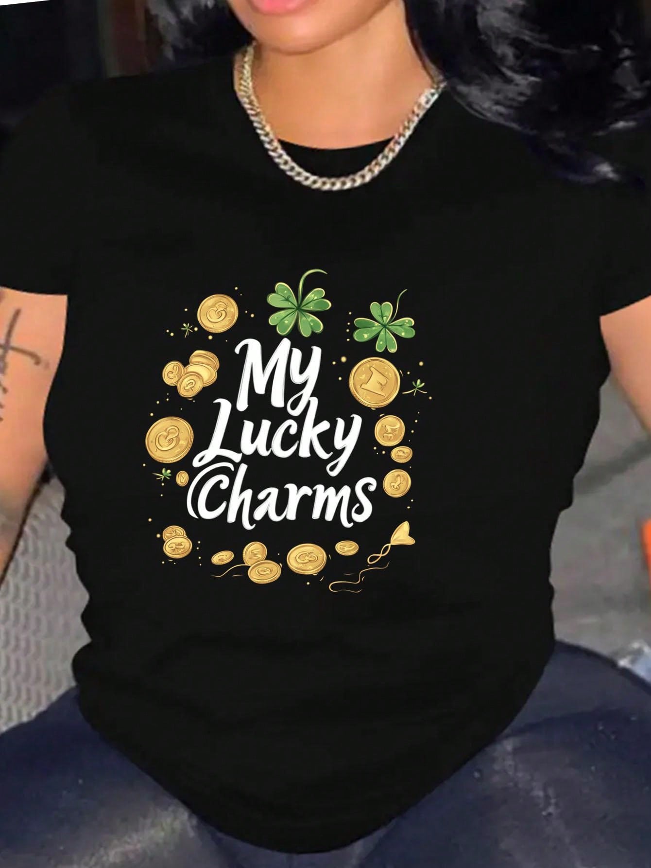 Chic Lucky Clover Graphic Tee - Lightweight & Stylish Casual Top for All Seasons