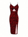 Chic Metal Chain Strap Bodycon Dress with Slit Detail