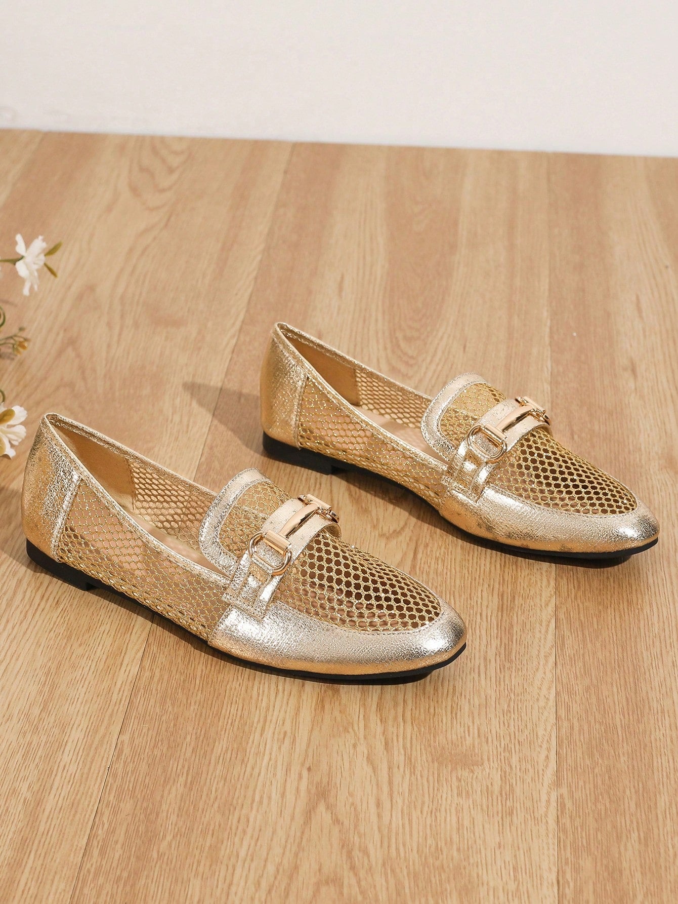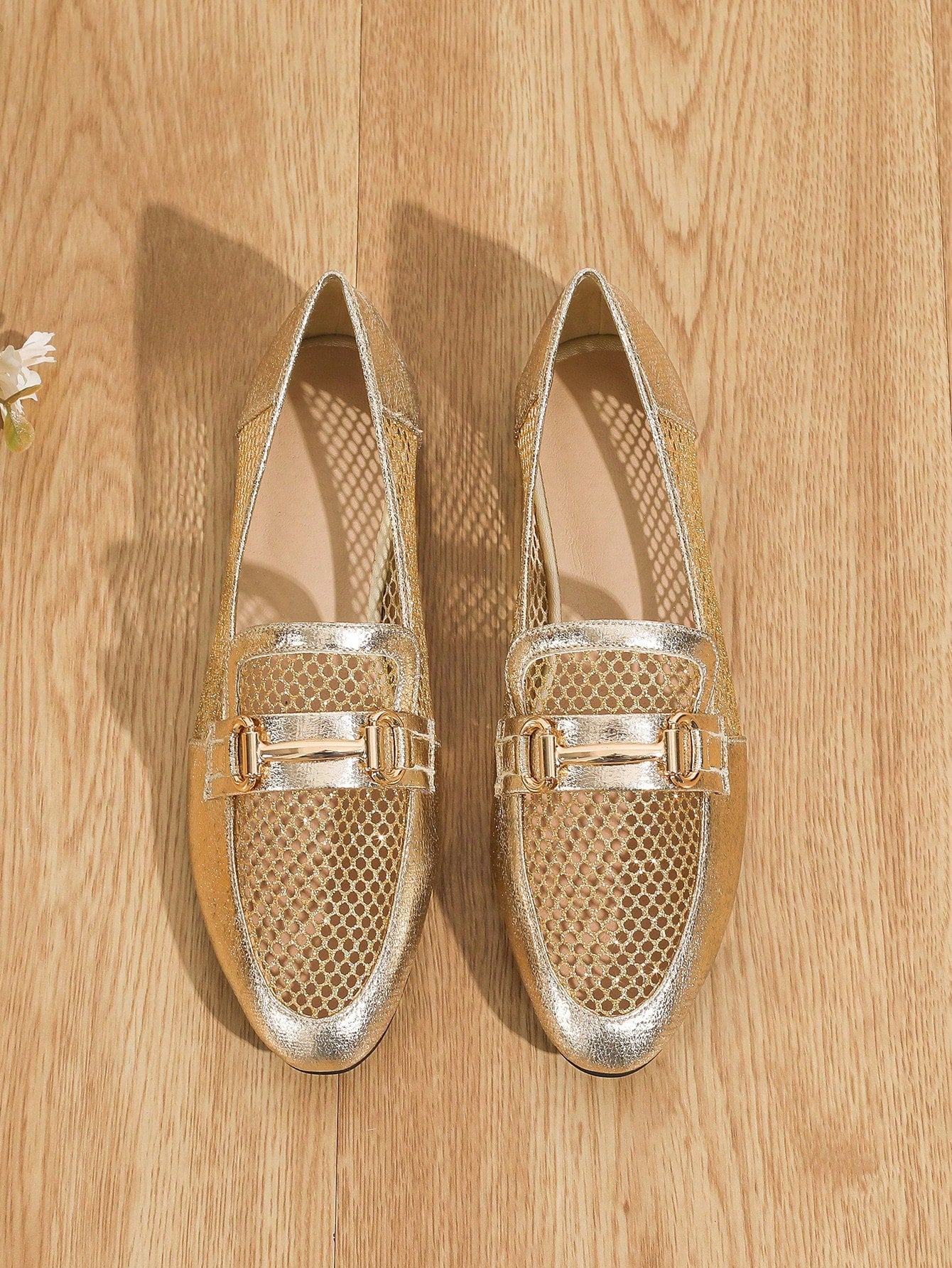 Chic Metallic Charm Loafers for Spring & Autumn - Breathable Flat Shoes with Elegant Metal Details