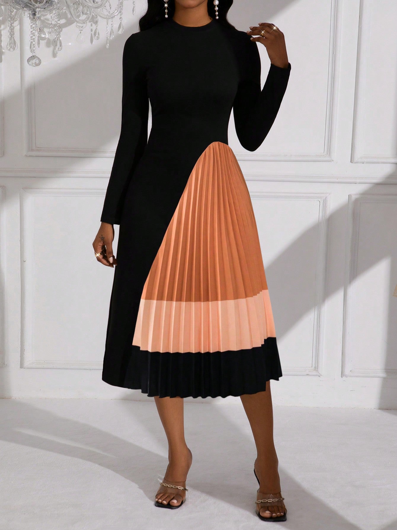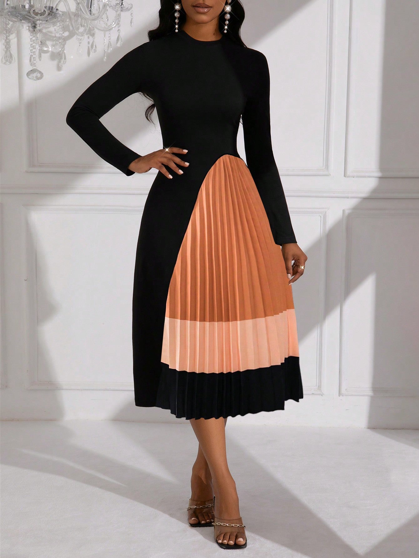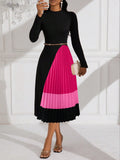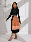 Chic Midi Pleated Patchwork Knit Dress for Women